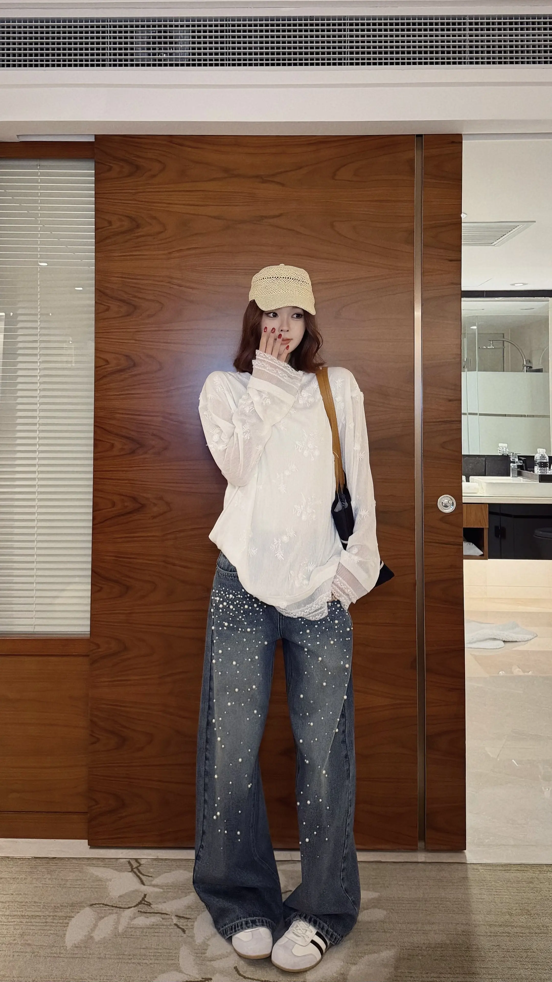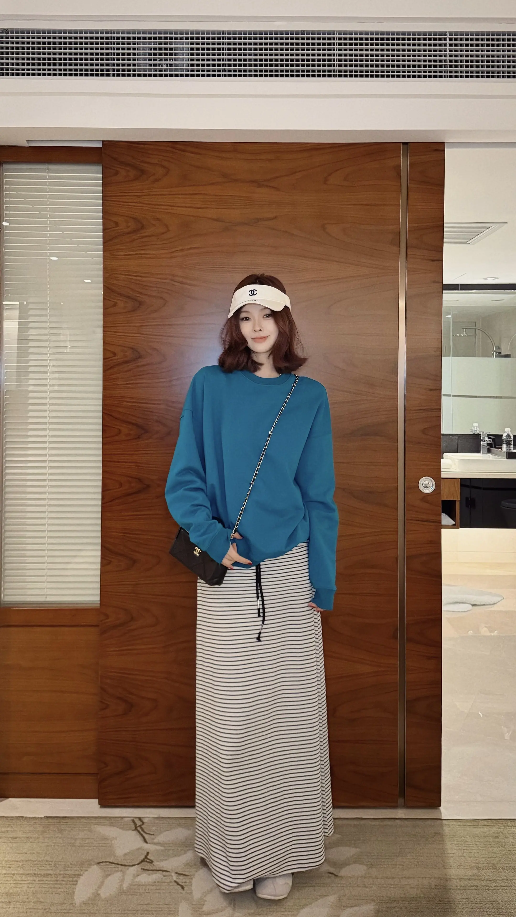 插肩袖T恤搭微喇休闲裤此搭配堪称慵懒惬意风的典范黑色弹力微喇裤舒适又显瘦