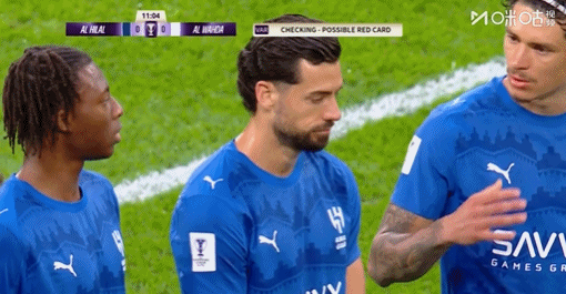随后VAR介入,主裁马宁在观看VAR后维持原判↓