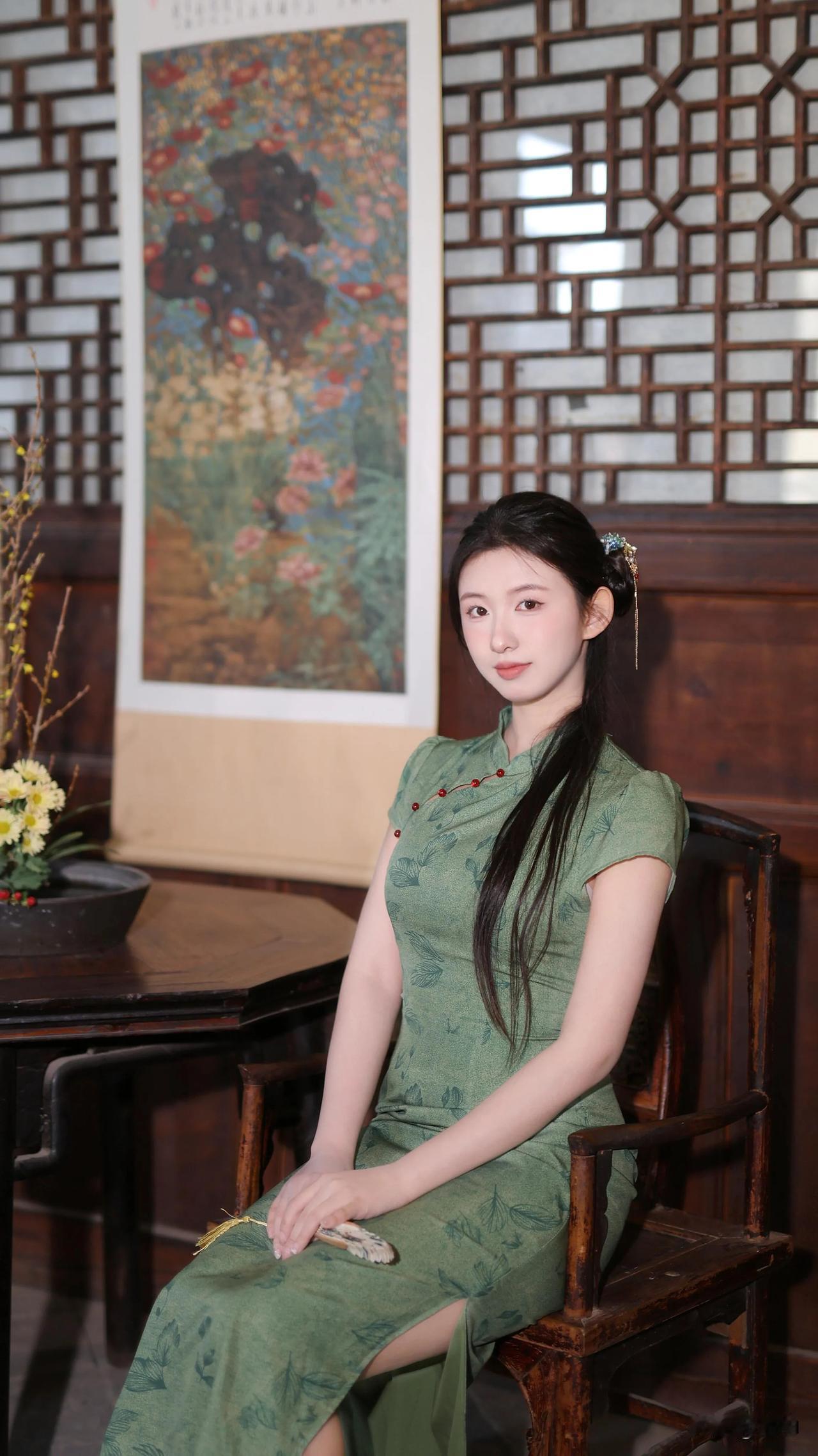 温婉优雅的旗袍美人,复古发饰点缀,尽显东方韵味。女星穿旗袍有多美