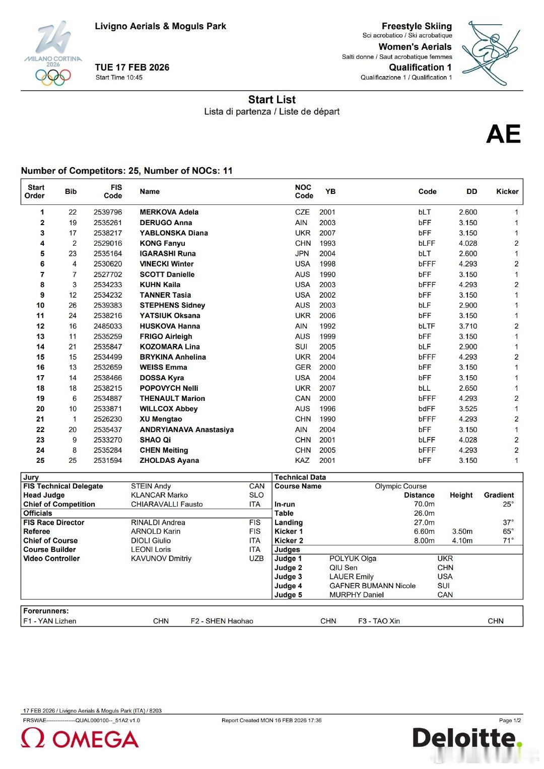 自由式滑雪女子空中技巧预赛自由式滑雪男子空中技巧预赛