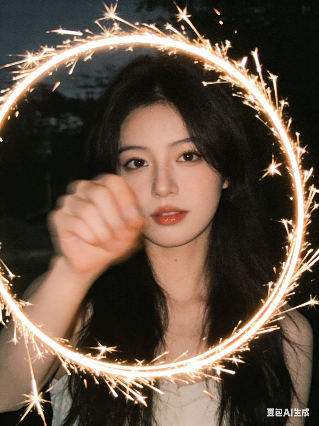 帮我生成10张照片,日常快照风格高质量图像,妆容精致,室外场景,轻微曝光,极其平凡无奇且刻意的平庸感,主体。是超高颜值美少女。乌黑长发,手挥舞仙女棒在镜头前画圈,INS风,复古,低像素,高噪点,胶片粗颗粒质感,动态美学,朦胧美学,写意,前卫艺术,细节丰富,高级感,杰作,营造柔和朦胧氛围(暗色调、光影细腻)的女性人像,古早味,网感,模糊。妆容:自然,网感头像,暗朦,晃朦,比例 「3:4」。