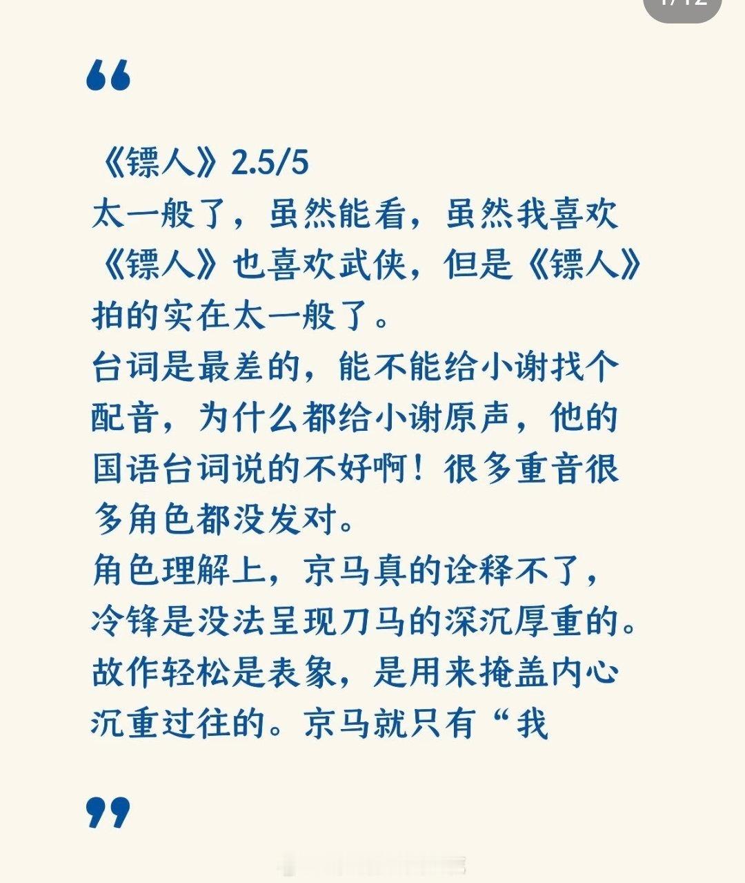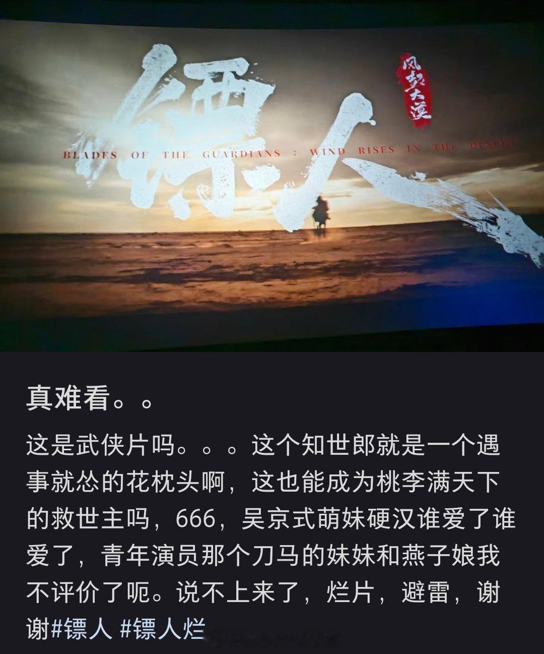 镖人第一波反馈集齐了吴京、于适、陈丽君众多明星的《镖人》,口碑不妙啊,很多网友说