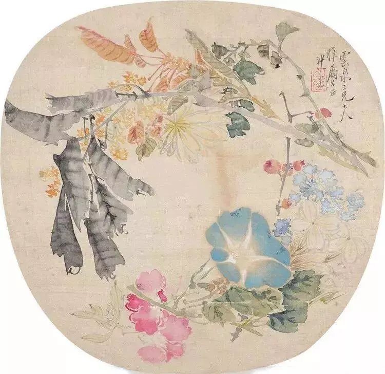 清 沙馥 扇面花鸟画欣赏。沙馥(1831-1906),字山春,江苏苏州人。出身绘画世家,又从马仙根学,善画人物、仕女、花卉,以此为业,为苏州阊门外山塘年画铺中最著名画家。这就是中国风遇见艺术