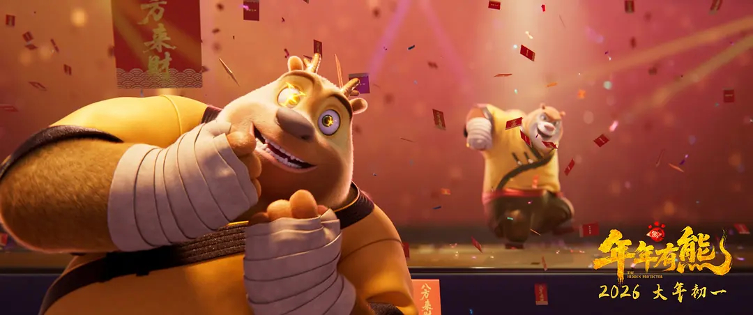 熊出没·年年有熊(2026) 我的评分:从2014年的《熊出没之夺宝熊兵》到2026年的《熊出没·年年有熊》,《熊出没》系列电影已经在大银幕陪伴了我们十二年,似乎不去看一场《熊出没》大电影就不算过年,这份观众与胸腔组合间的羁绊,真的经历住了时间的考验。熊出没系列,与过年有着天然的契合度,想当年该系列的第一部动画长片就叫《过年》,如今的《熊出没·年年有熊》作为系列首个中式奇幻题材作品,更是回归了“过年”主题,无论是剧情中的“年关城”设定,还是人物中的青春版年兽“年年”,都让年味在银幕上满溢,也让成长的治愈直抵心底。 十二年陪伴,熊出没从未停下创新的脚步。前有连续五部的“科幻系列”,此番告别科幻叙事,并非一蹴而就,也是经过了深思熟虑的考量与布局,努力扎根于中国传统年文化,打造出满是东方韵味的年关城,如重庆洪崖洞、李子坝的实景还原让市井烟火扑面而来,剪纸、水墨的艺术融合,搭配融入京剧锣鼓经、唢呐电子乐的民乐配乐,中式奇幻的视听盛宴惊艳十足。挂满灯笼的街巷、舞龙舞狮的盛景,英歌舞、踩高跷等非遗民俗的呈现,更是将久违的年味拉满,成为春节档最有年味儿的影片。 在角色层面,《熊出没·年年有熊》也在不断求新求变,此次故事里的熊大,打破了一贯的 “强者” 形象,沦为团队里的吊车尾,这份自我定位的焦虑,恰是当下许多人的真实写照,但他的担当却始终如一,继续给我们带来满满安全感。接纳不完美的自己,与自我和解亦是一种成长。十二年一个生肖轮回,熊出没从最初的冒险故事,成长为陪伴亿万家庭的新年俗。不变的是合家欢的底色,是熊强铁三角的友情与担当,变化的是愈发成熟的制作与愈发深刻的内核。这部影片,是给老粉的情怀献礼,是给家庭的新春祝福,更是国产动画深耕本土文化的精彩答卷,春节合家欢,看这一部就够了。熊出没年年有熊今日上映有熊出没才是完整的年