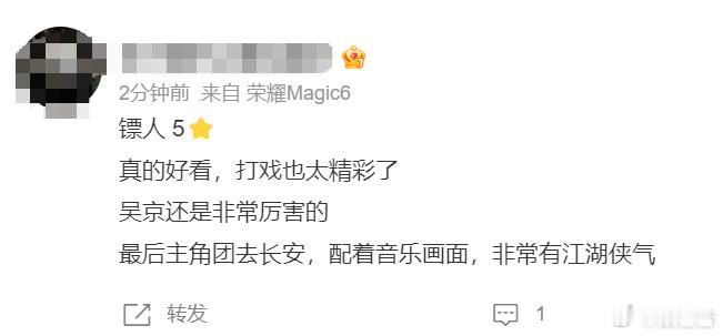 镖人口碑给到人上人超出预期太多!《镖人》剧情扎实、人物立体、打戏过瘾,称得上年度诚意之作。