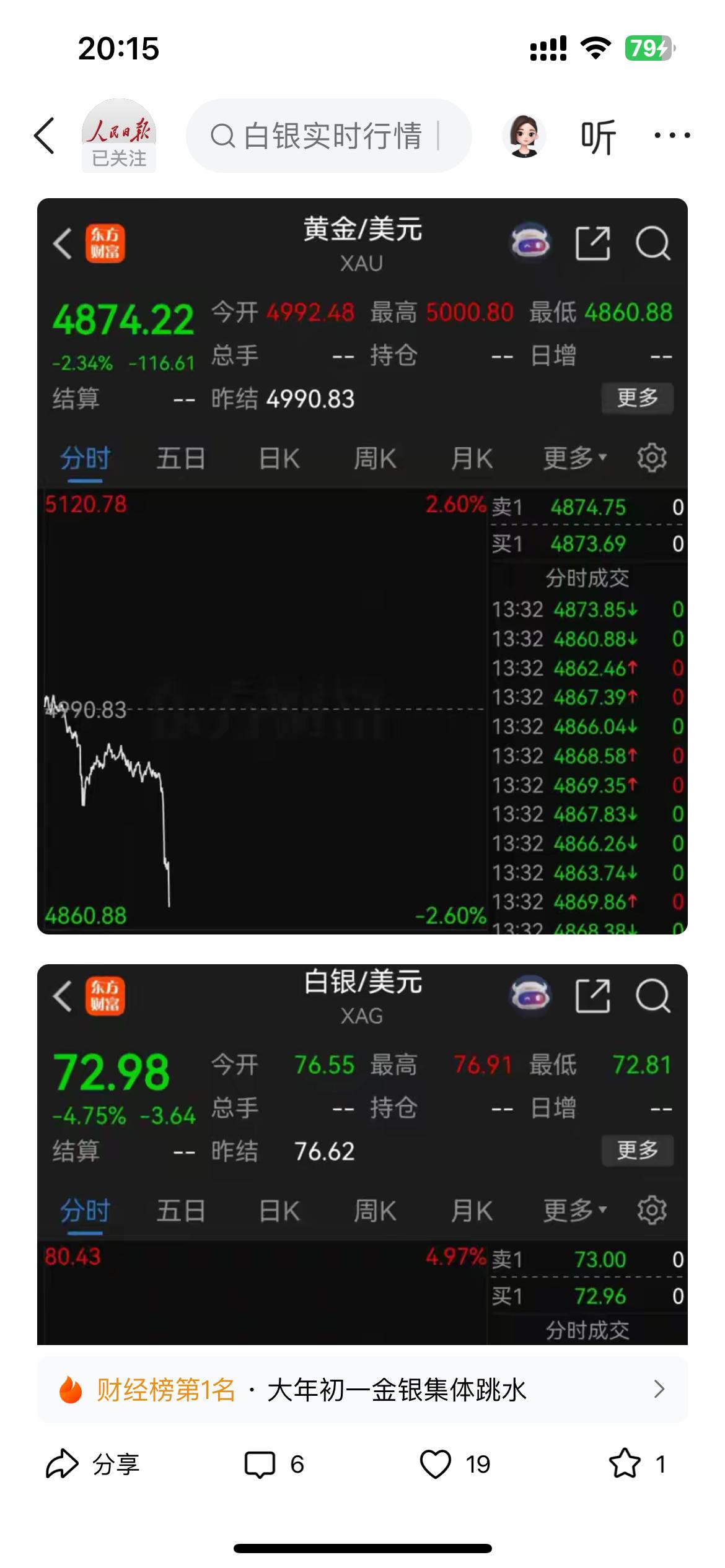 大过年的,黄金白银又开始跌了,这是不让大家过好年吧! 不过有跌就会有涨,看来正如一些人说。横盘涨跌是为了更好收割, 前几天黄金已经跌到4800以下了,这现在还在4800以上呢!毛毛雨了! 白银也只是跌5%的跌幅,和前几天直接37%的跌幅比起来更是不足挂齿。
