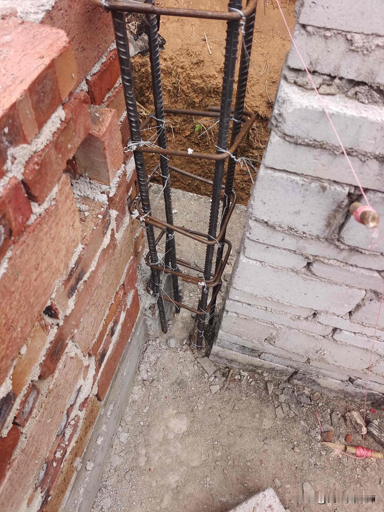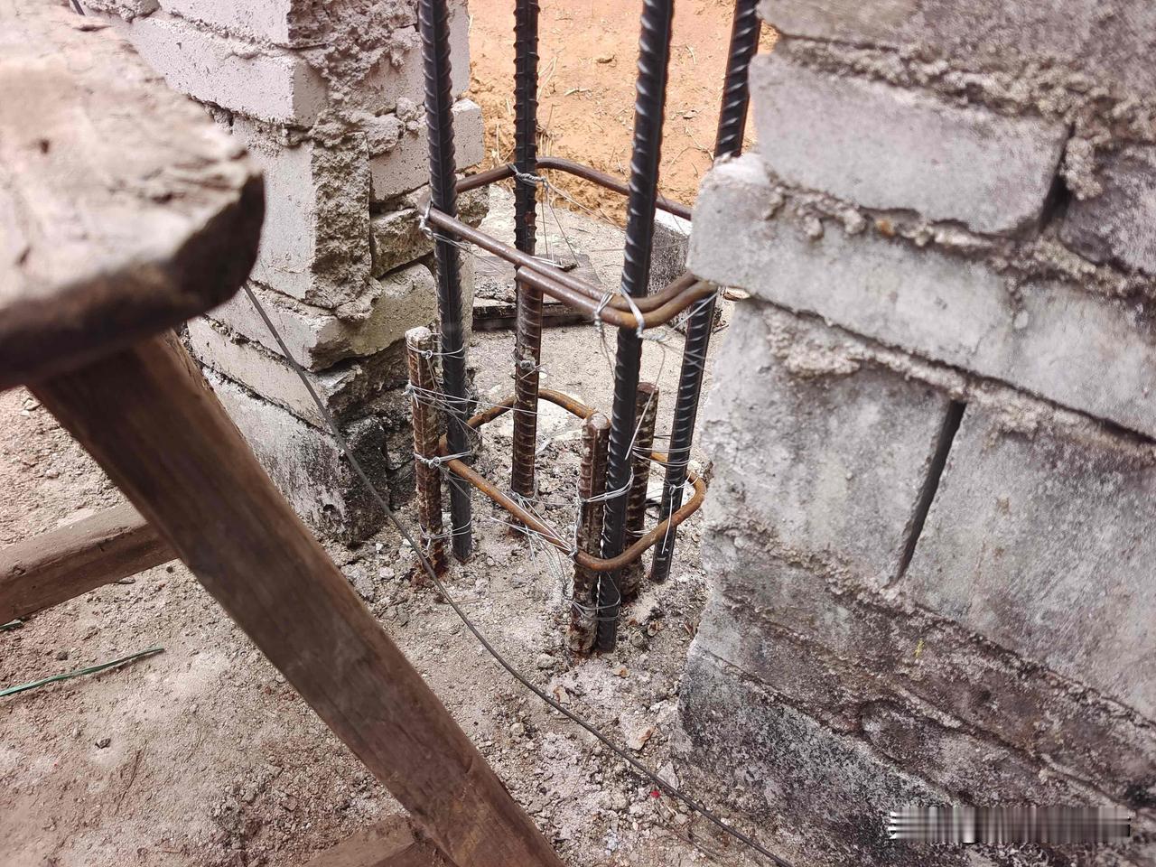 这是我叔绑扎的钢筋 今年过年看到我叔在老家建二楼房子,到现场看一下,和他说柱子的