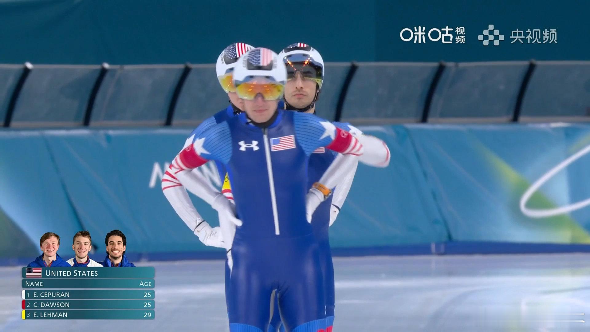 中国男团进速滑追逐铜牌赛速滑追逐中国男团不敌美国
