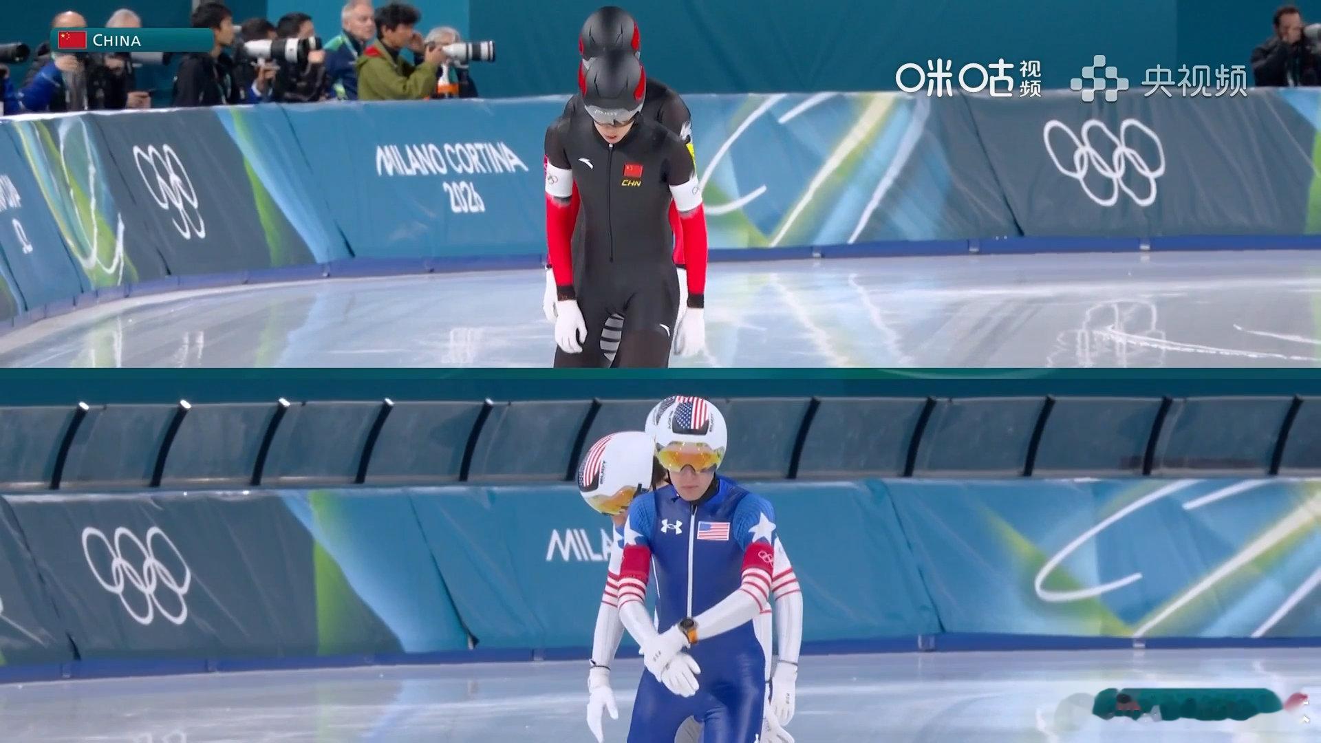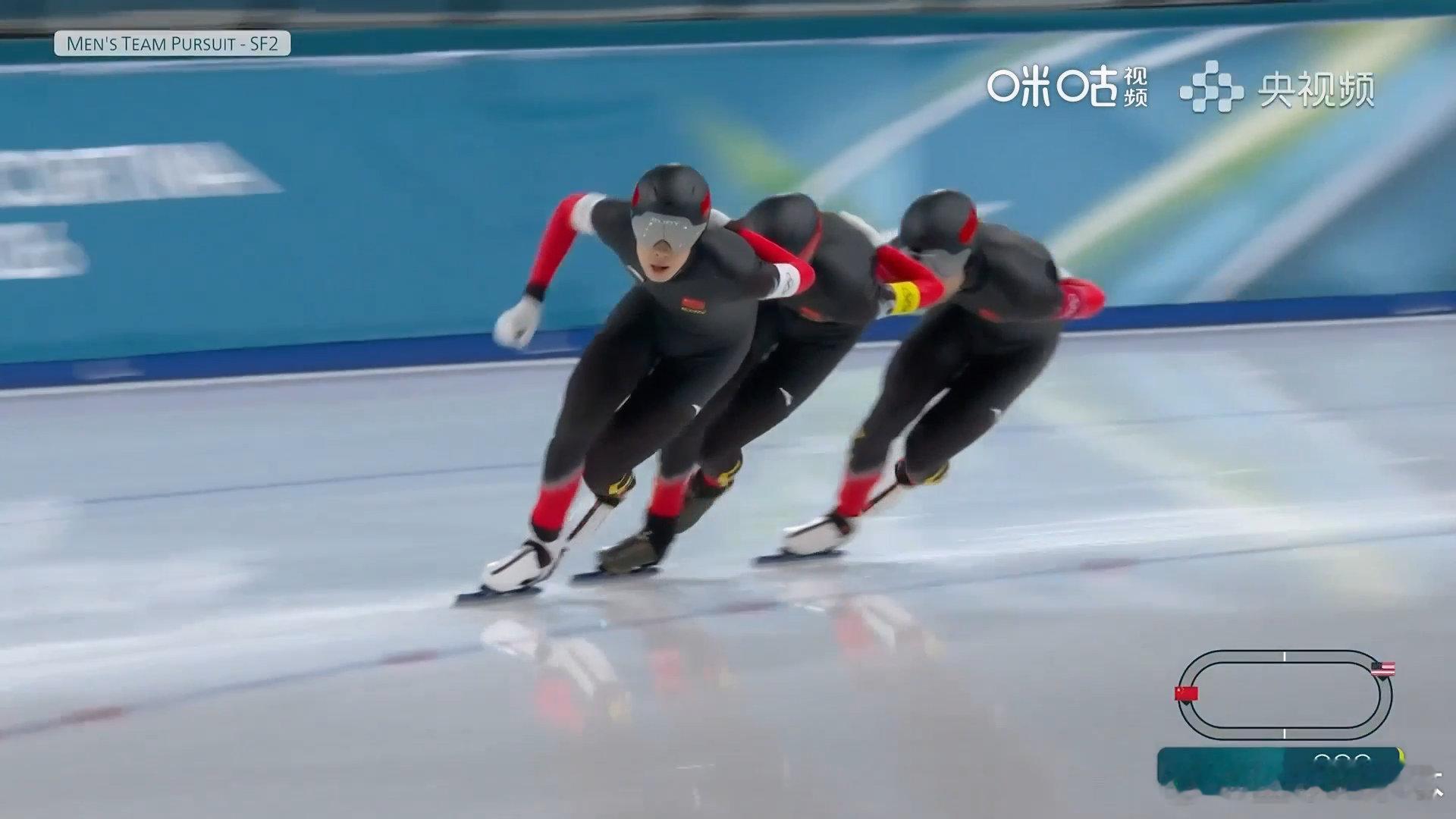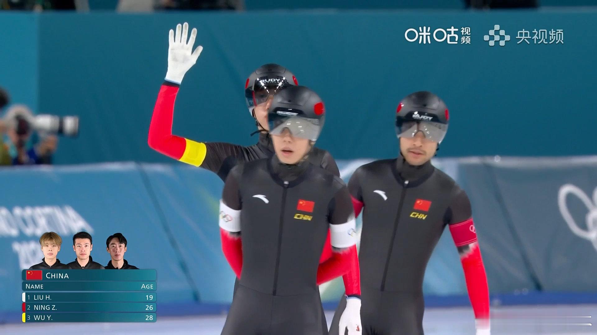 虽憾负美国队,依旧创造佳绩。由刘瀚彬、宁忠岩、吴宇组成的中国队进入团体追逐铜牌赛,稍后我们继续为你们呐喊。