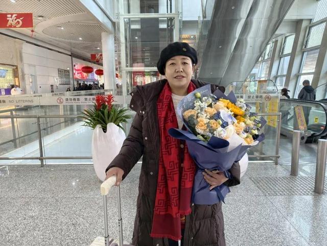 2月17日下午,在参加完中央广播电视总台2026年春节联欢晚会后,返回银川的第九届全国道德模范贺兰县南梁台子铁东村的村民海智梅,在机场难掩心中激动。