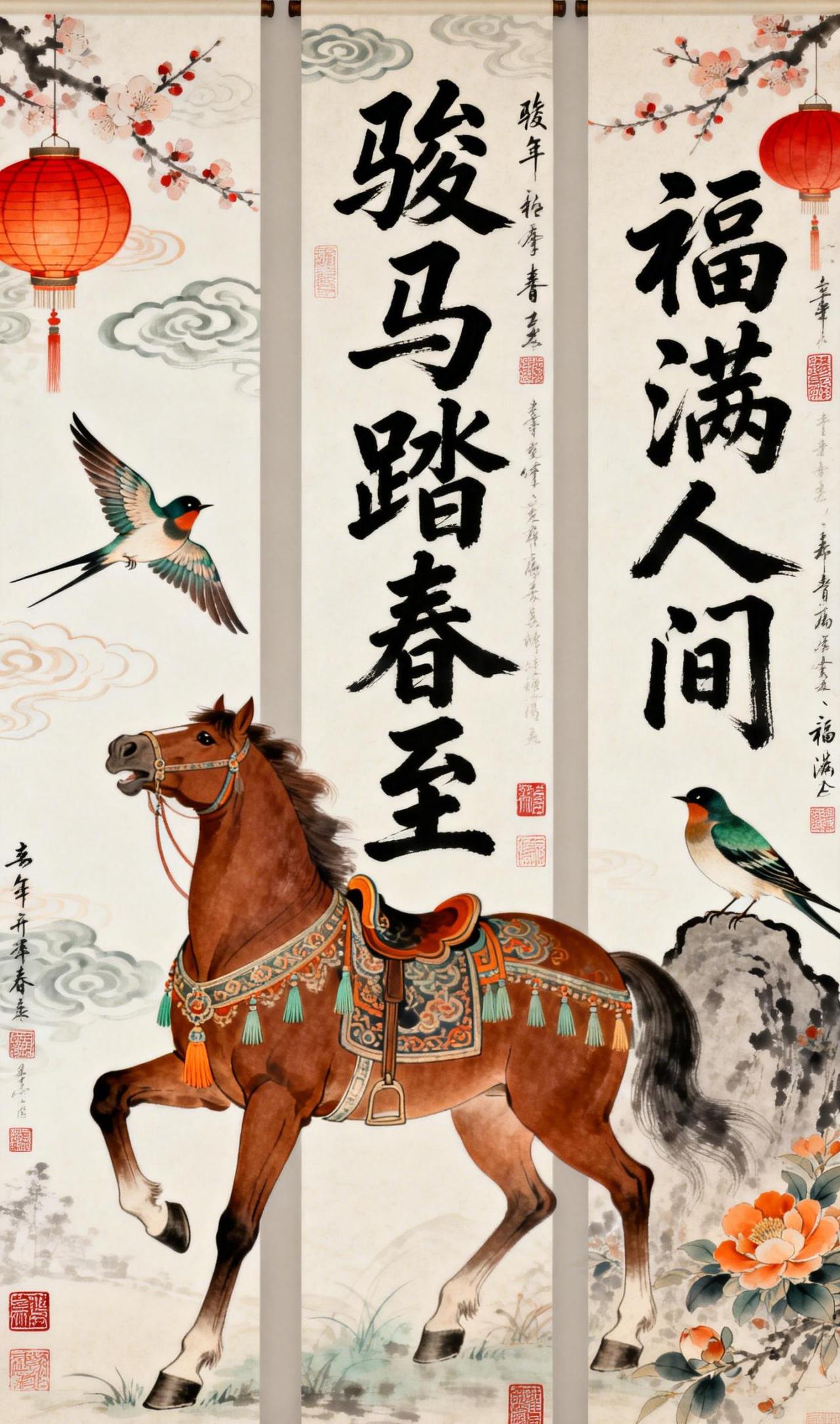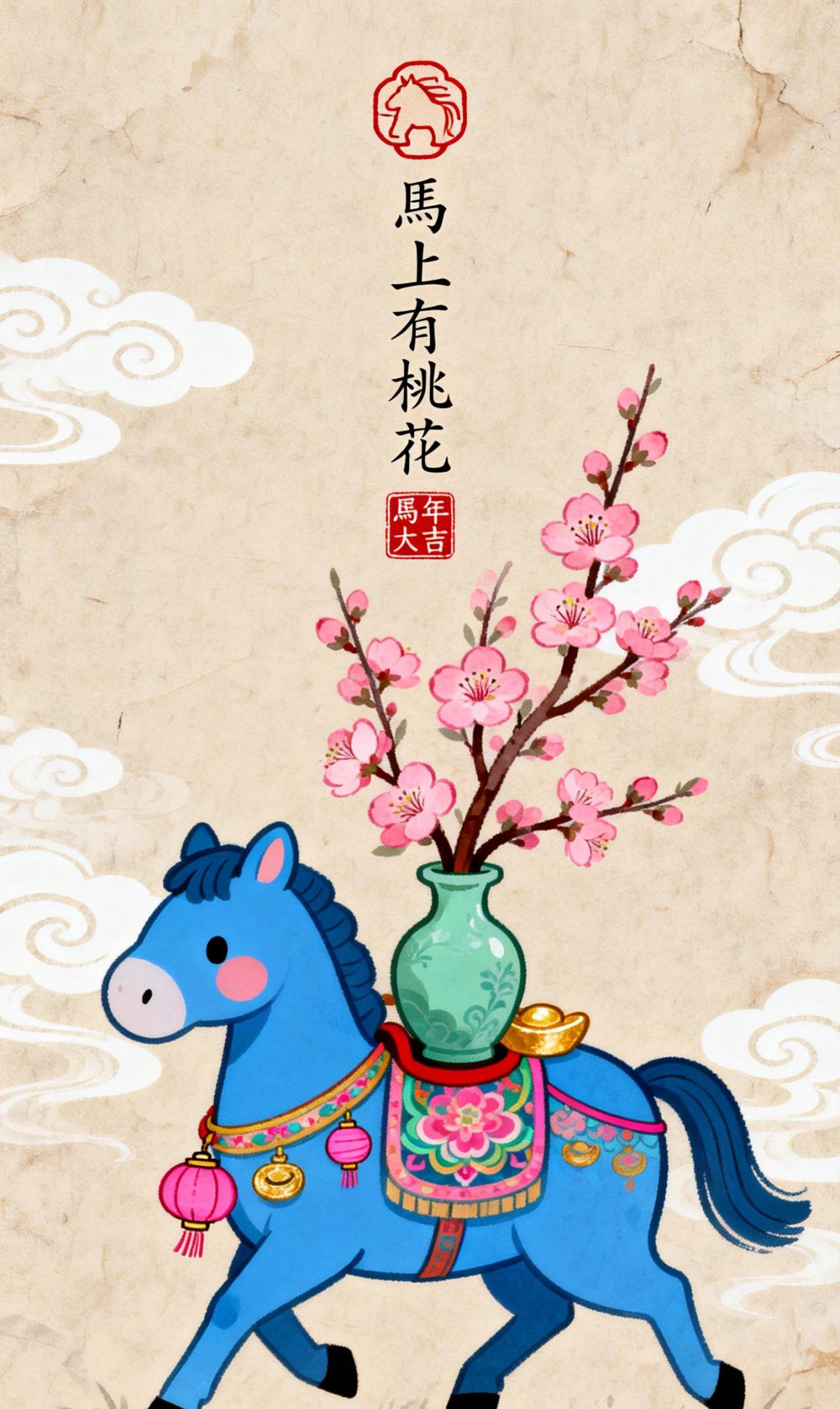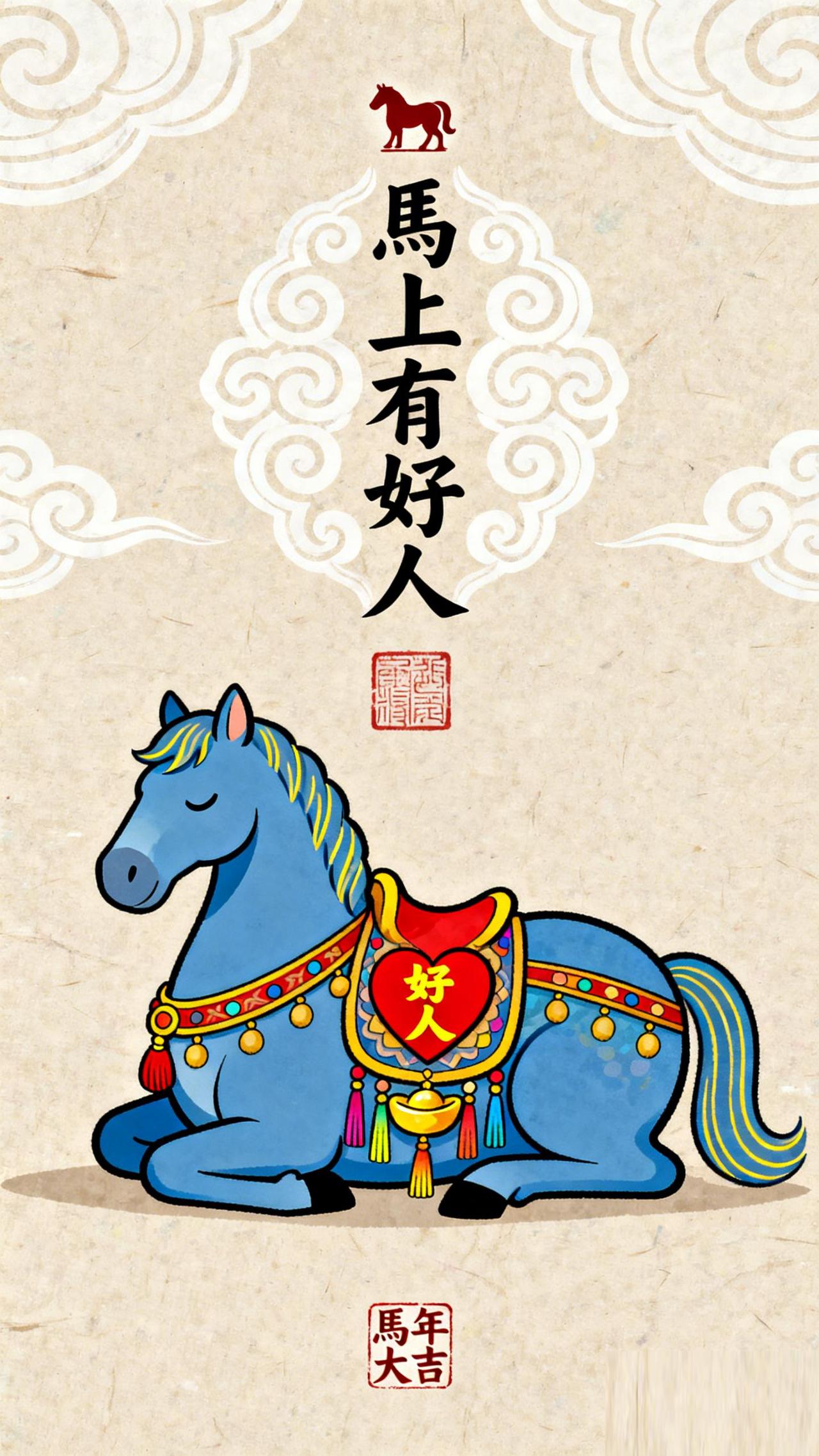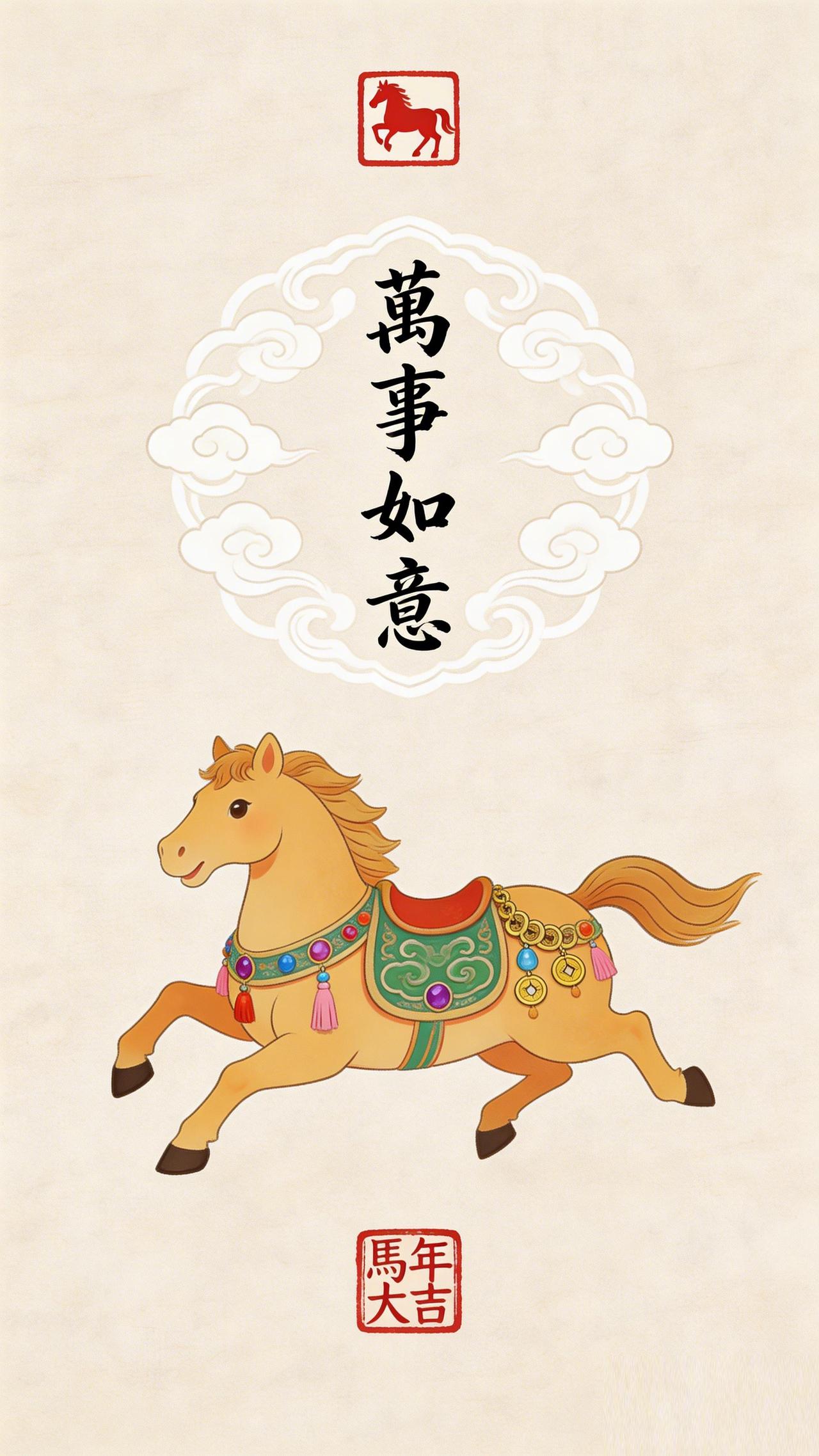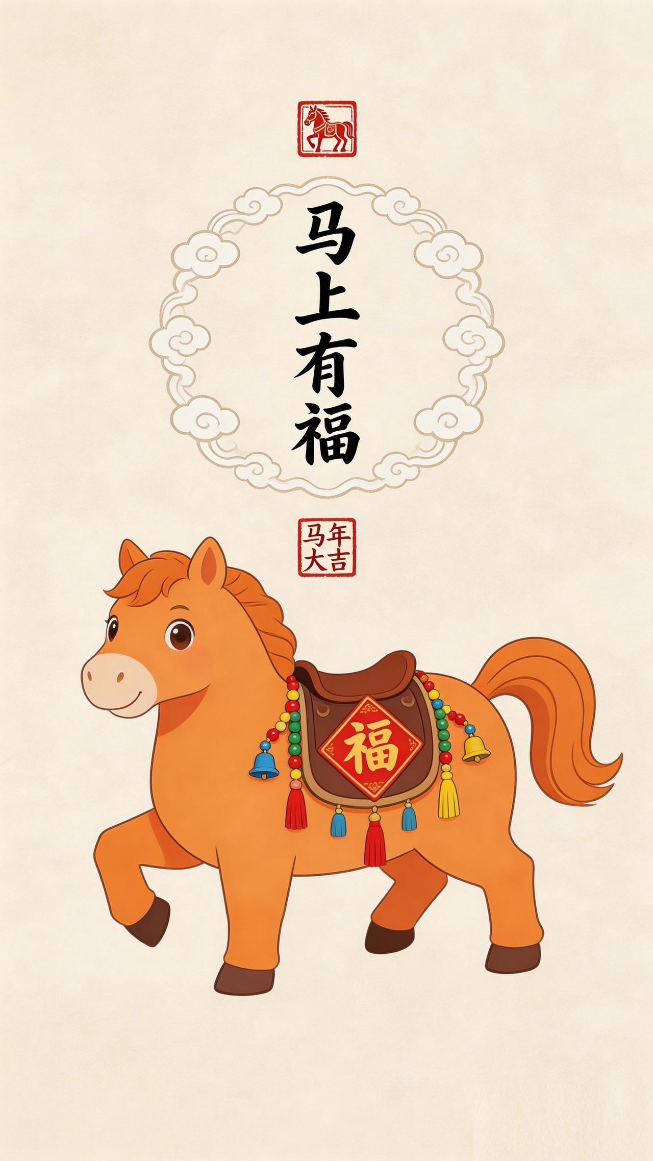 策马迎春,福满乾坤 春风得意马蹄疾,福气盈门万象新。值此丙午马年新春,愿您“马上有福”——福气如骏马奔腾,瞬间而至;愿您“福禄安康”——生活如青松常翠,岁岁平安,财禄双全;愿您“万事如意”——心之所向,行之所往,皆能马到成功。 新的一年,让我们策马扬鞭,奔赴山海。愿日子红红火火,如烈焰战马般热烈;愿心情舒舒畅畅,似草原骏马般自由。烦恼随旧岁而去,好运伴新春而来。阖家团圆时,举杯共祝:马年大吉,福泽绵长,所求皆如愿,所行皆坦途! 马年大吉
