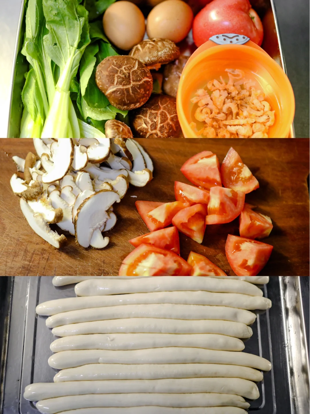 鸡蛋、海米、西红柿、油菜、香菇