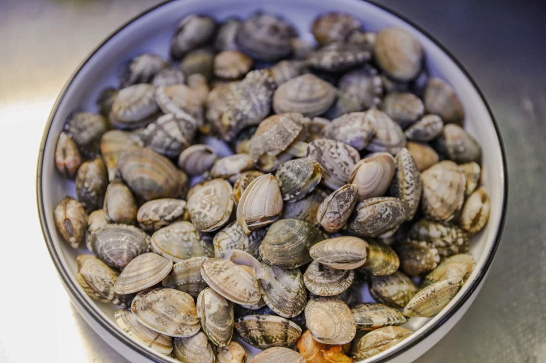 ✨1.新鲜的蛤蜊清洗干净,一定要保证沙子吐完。一般市售的蛤蜊通常沙子都已经吐得差不多了。