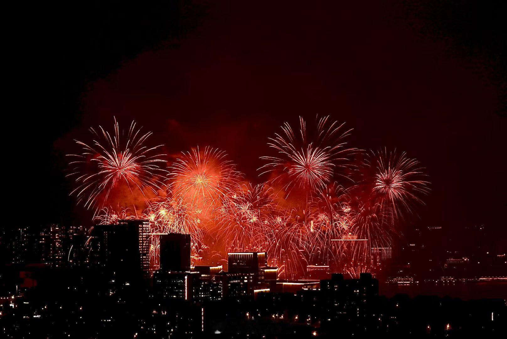 广州烟花 这应该是我朋友圈今晚最漂亮的一组新春烟花照片🎆在珠江放烟花真的好美,很有年味。欢迎大家过年来广州玩 广州