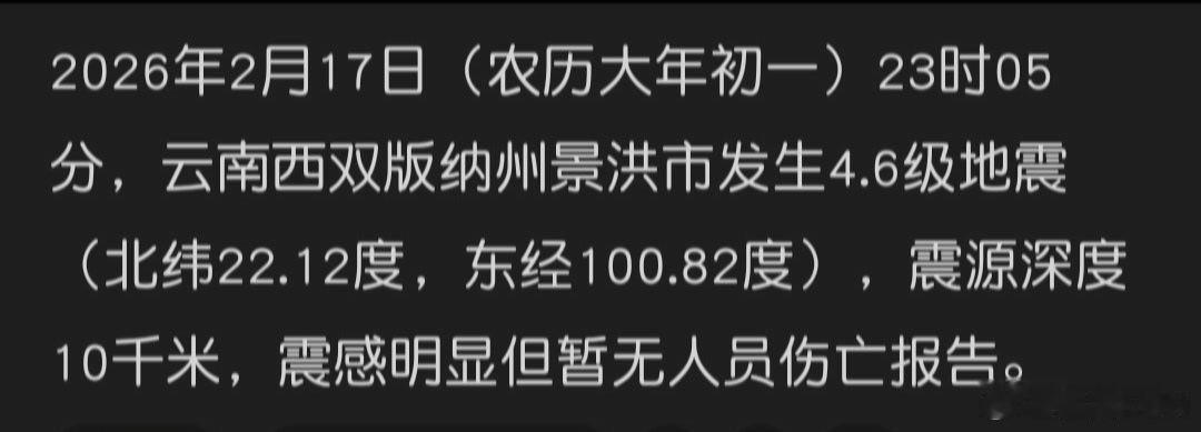 西双版纳地震大年初一发生4.6级地震,很多人说震感很强,有的人穿着酒店一次性拖鞋都跑下楼来了,希望都平安。