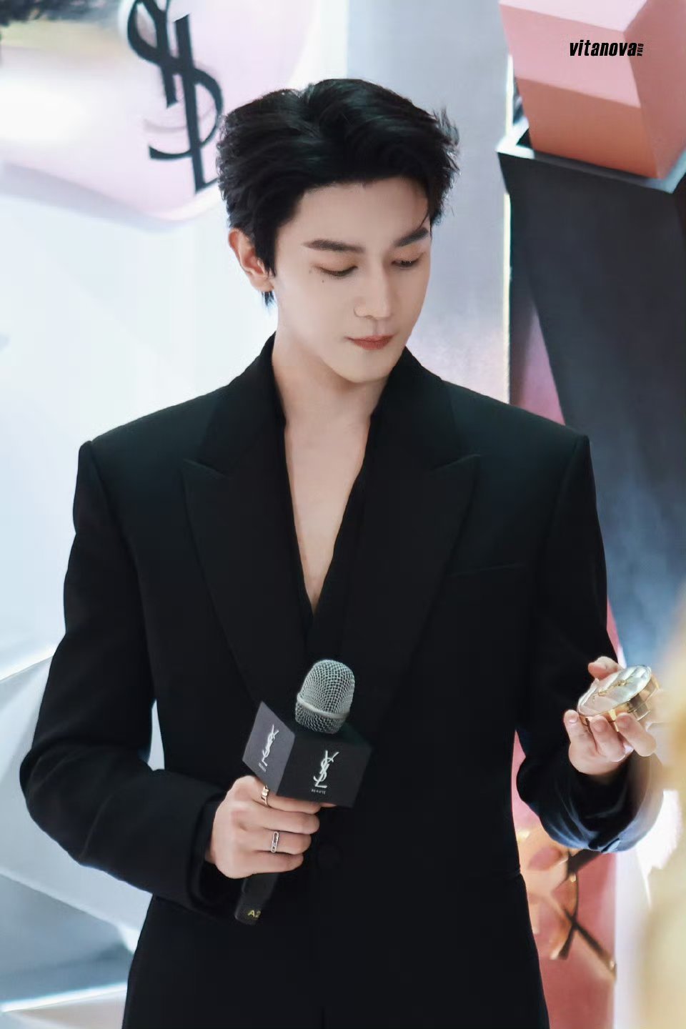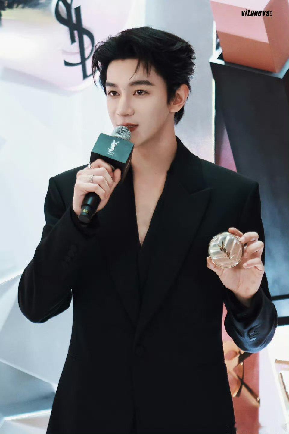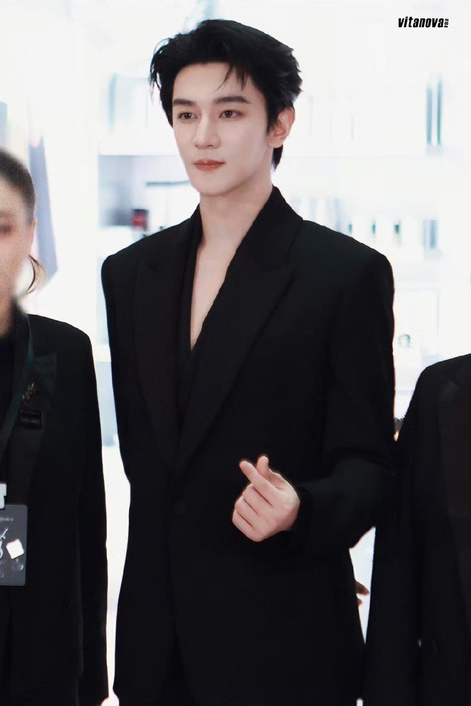 夏之光 出席南京YSL活动路透all black 西装 完全是霸总级别 好帅气的