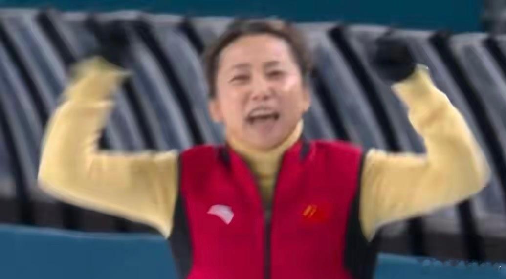 李琰教练庆祝中国队铜牌一枚铜牌创造历史中国速滑小伙子太棒了零点零九秒的领先,中国