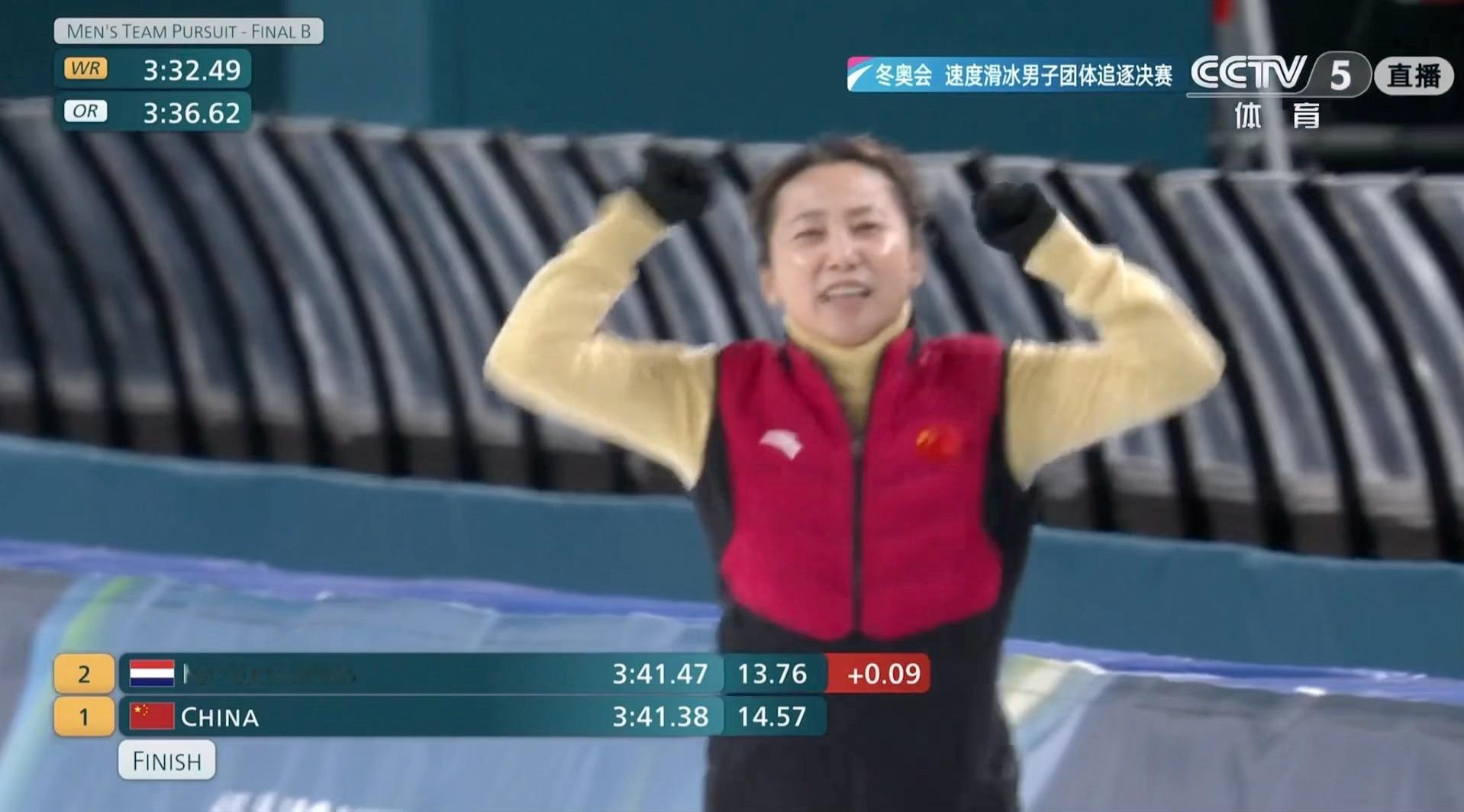 李琰教练庆祝中国队铜牌在🇨🇳中国队冲刺之后,看到一个熟悉的身影