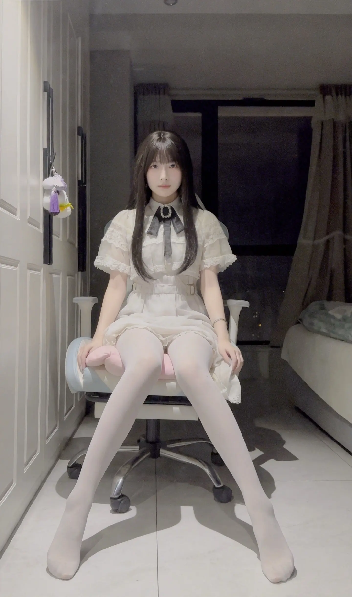 白月光的氛围感,被这条蕾丝裙和白丝焊在身上了🌙 深夜房间的柔光里,连自拍都带着清甜的滤镜