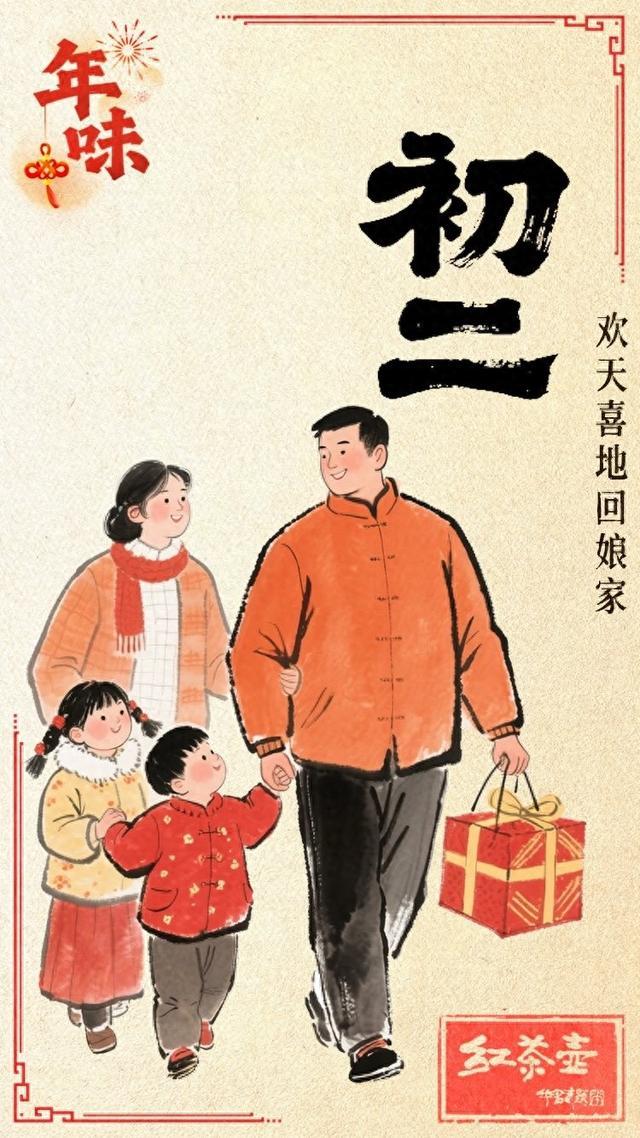 大年初二,出嫁的女儿携夫婿同行回娘家,亦俗称“迎婿日”。全国多数地方都是正月初二回娘家,而在山东的烟台、莱芜、聊城等地,则是正月初三回娘家。无论是正月初二,还是正月初三,回娘家的出嫁女子及丈夫和他们的子女回到娘家后都要先向祖父母及父母拜年,而这些长辈也要分赠红包给后辈。当然,这天女婿给丈人家拜年,手里自然不能空,拎着大大小小的礼品则是必须的。