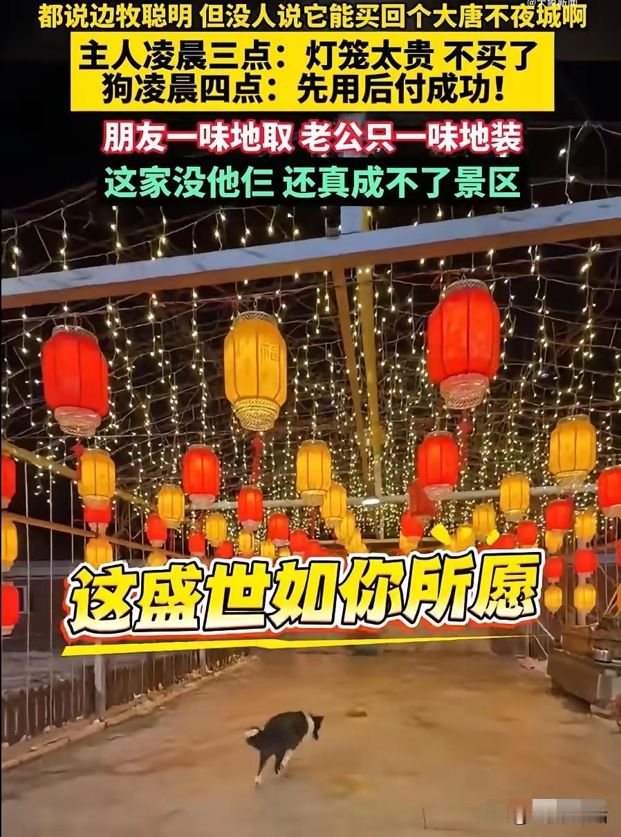 笑不活了!吉林,女子半夜刷手机想要买点灯笼,选来选去觉得300块太贵就睡觉了,不料,半夜家里狗狗拿她手机下单5000+,现在家里灯火通明,都成了大唐不夜城了 吉林的一处农家小院,此刻正被一种令人目眩神迷的红光笼罩。 如果不知情的路人经过,大概会以为,这里正在举办这一届的乡村春晚分会场,或者是为了迎接2026年的农历新年,搞了一场特别的灯光秀。 院子里、客厅、阳台,甚至卧室的角落,挂满了各式各样的灯笼,串灯闪烁,造型灯流转,将寒冷的冬夜照得如同白昼。 这哪里是普通人家过年,简直就是把西安的“大唐不夜城”,直接搬进了东北的黑土地。 但这漫天红光的背后,并不是什么财大气粗的炫富故事,而是一场令人哭笑不得的,“家庭金融事故”。 这一屋子辉煌的代价,是整整五千多块钱的真金白银,而就在这场奢华灯会开幕的前夜,这家的女主人还在为了三百块钱的预算纠结不已。 让我们把时间轴,拨回到那个改变命运的深夜,凌晨三点,吉林的冬夜万籁俱寂,窗外飘着零星的雪花。 女主人窝在暖和的被窝里,手指在手机屏幕上机械地滑动,当时快过年了,想给家里添点年味,但理性的消费习惯,让她在购物车里进进出出。 三百块,对于这一年的年货预算来说,她觉得贵了,作为一名精打细算的家庭主妇,性价比是绝对的红线。 在经过了无数次的比价和心理博弈后,她最终选择了放弃,带着“太贵了不划算”的念头,把手机往枕头边一扔,昏昏沉沉地睡去。 悲剧的伏笔就在这一刻埋下:手机没有锁屏,购物页面依然亮着,像是一个敞开的金库大门。 凌晨四点,人类的理性已经下线,动物的本能开始接管战场,家里那只号称“狗中智商天花板”的边境牧羊犬,并没有睡觉。 对于这种好奇心旺盛的生物来说,黑暗中发光的屏幕有着致命的吸引力,它凑了过去,或许是想看看主人在研究什么,或许仅仅是想用湿漉漉的鼻子或者爪子,确认一下这个光源的质感。 接下来的操作,堪称一次完美的“金融”入侵,边牧的爪子在屏幕上一通胡乱扒拉。在现在的电商设计逻辑里,为了让用户花钱更顺滑,“阻力”被设计得越来越小。 如果是常规支付,可能还需要密码或指纹,但这只狗无意中触发了,电商系统中最锋利的一把镰刀——“先用后付”。 不需要密码,不需要人脸识别,只要点击,交易即刻达成,于是,在主人因为三百块嫌贵而沉睡的时刻,这只狗“大手一挥”,不仅清空了购物车,还顺手拼单成功了多箱灯笼。 它不懂什么叫预算,不懂什么叫通货膨胀,它只知道屏幕在闪烁,爪子在动,世界很奇妙,这一单,直接干到了五千多。 如果故事到这里就结束,或许还有挽回的余地,毕竟七天无理由退货,是现代网购的最后一道防线。 但命运显然觉得这个玩笑开得还不够大,于是安排了第二位关键角色登场——毫不知情的丈夫。 接下来的几天,是典型的信息错位期,女主人年底工作繁忙,忙得脚不沾地,家里陆陆续续堆满的快递箱,都被她习惯性地让朋友代收或扔在角落,根本没空拆开看一眼。 这就给了误会发酵的温床,某天下午,丈夫回家,看着满屋子的快递,下意识地认为这是妻子为了过年精心准备的大手笔。 为了给妻子一个惊喜,或者仅仅是为了表现一下男主人的执行力,他做出了一个决定性的动作:直接请安装师傅上门。 当电钻的声音在墙壁上响起时,一切都成了定局,刺耳的装修声,终于惊动了女主人,她跑出来一看,师傅已经干得热火朝天,灯笼拆了一地,大半已经挂上了墙。 她感觉不对劲,颤抖着打开手机,翻到了那个凌晨四点的订单,五千多块钱,一百多个款式,密密麻麻的购买记录赫然在目。 这时候想退货?包装拆了,钻孔打了,商品完好性已经破坏,这笔钱,不想花也得花了,看着满屋子红得刺眼的灯光,女主人站在院子里,心情大概比这东北的冷风还要凌乱。 邻居们探头探脑,羡慕这家的排场,网友们在视频下笑得前仰后合,调侃这只狗“嫌贫爱富”,嫌主人抠门,亲自下场消费升级。 而那个始作俑者,那只挥金如土的边牧,此刻正蹲在五千块的灯光下,摇着尾巴,一脸邀功的表情,在它的认知里,家里变亮了,主人看着它,这就是一件好事。 这虽然是个让人捧腹的过年段子,但细想之下,却让人后背发凉,在这个算法和便捷支付编织的时代,我们的钱包,有时候真的比想象中更脆弱。 一个未锁的屏幕,一个默认开启的“先用后付”,再加上一只好动的宠物,就能在几秒钟内击穿一个成年人的理财防线。 这一夜的“大唐不夜城”,虽然看着喜庆,但电表走的每一度电,和账单上的每一个数字,都在提醒我们:在数字化生存的今天,关掉免密支付,锁好手机屏幕,可能比锁好家门更重要。 毕竟,小偷进门还得撬锁,而家里的狗,是真的会直接刷你的脸(或爪子)买单。