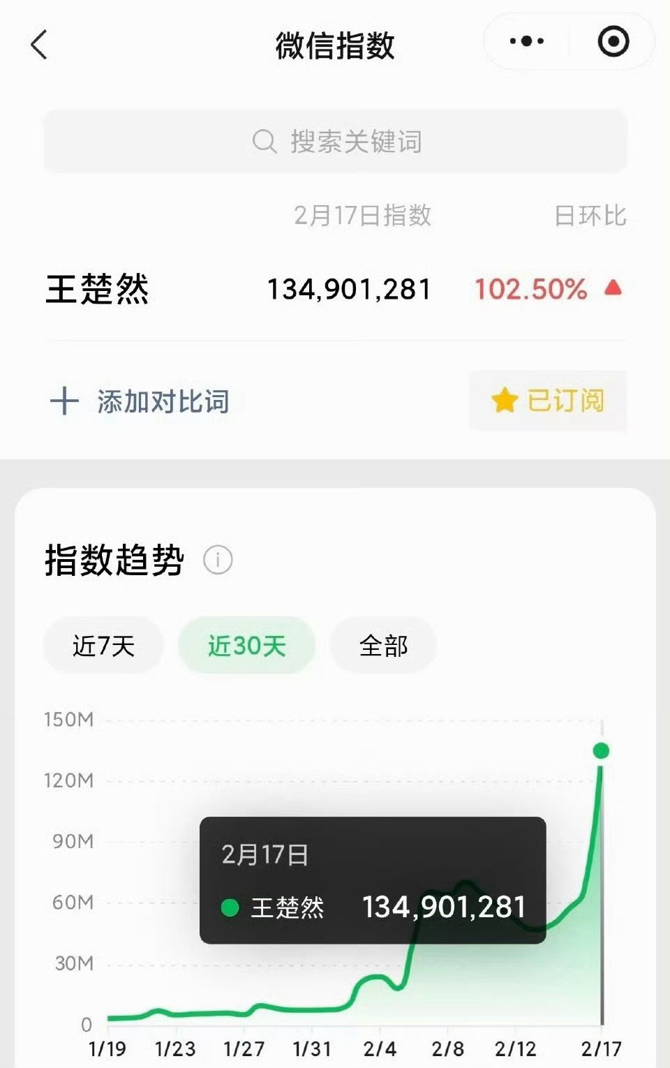 王楚然春晚次日微指破亿