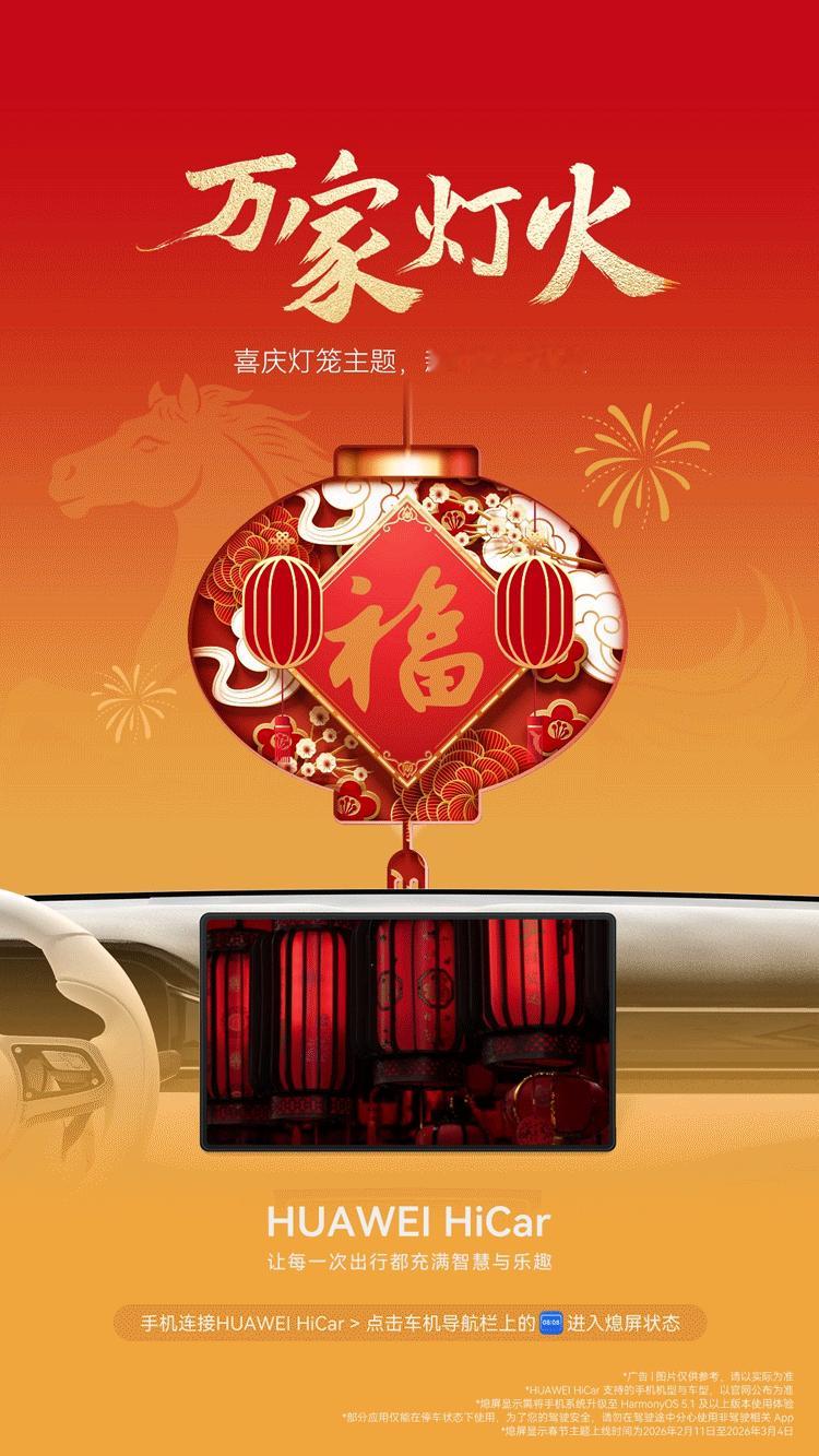 最喜欢的HiCar的一点就是每逢节假日都有精美的节日壁纸,装饰车都变得简单了很多,又让出行带有浓浓的春节氛围!针不戳~