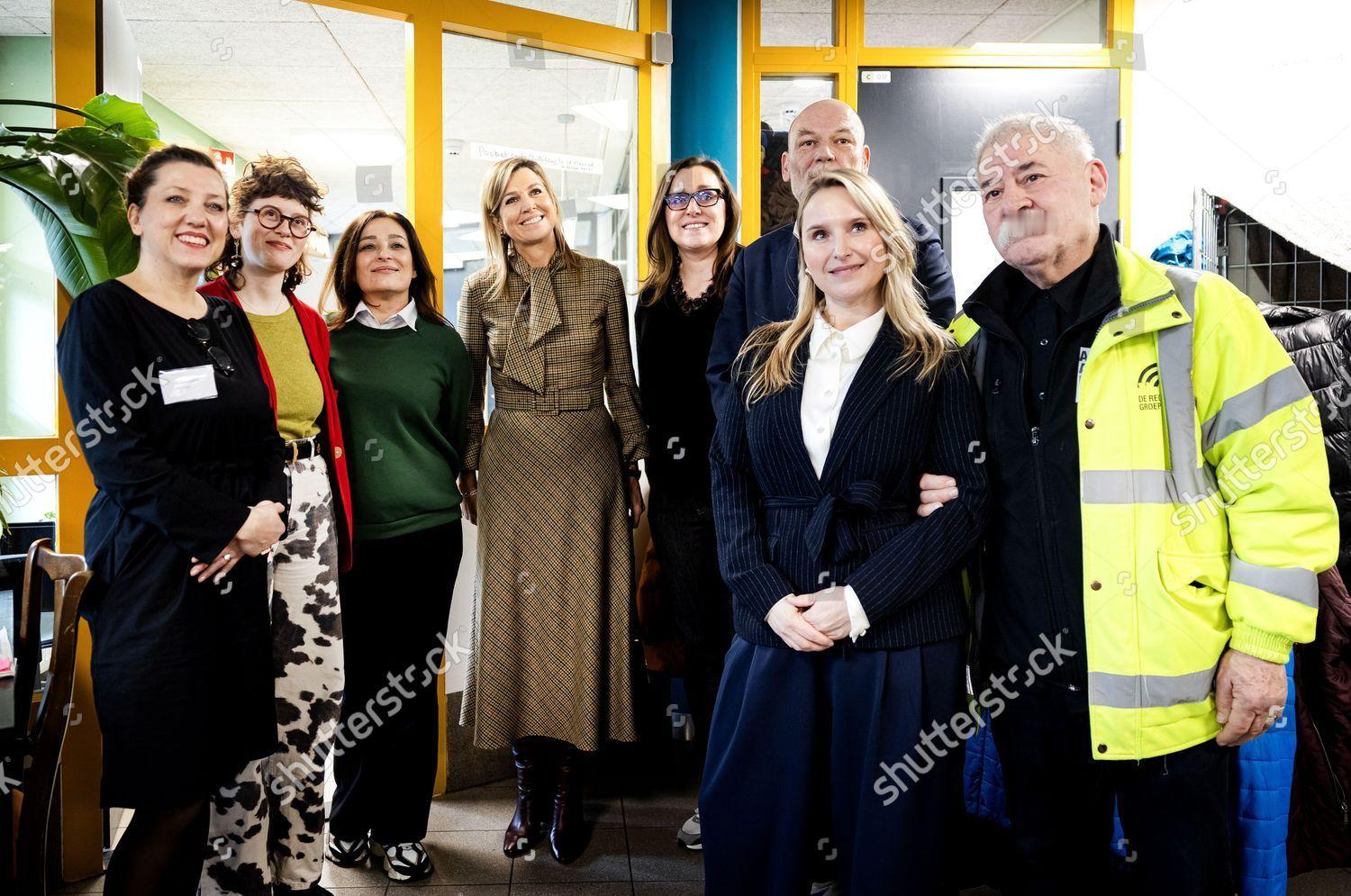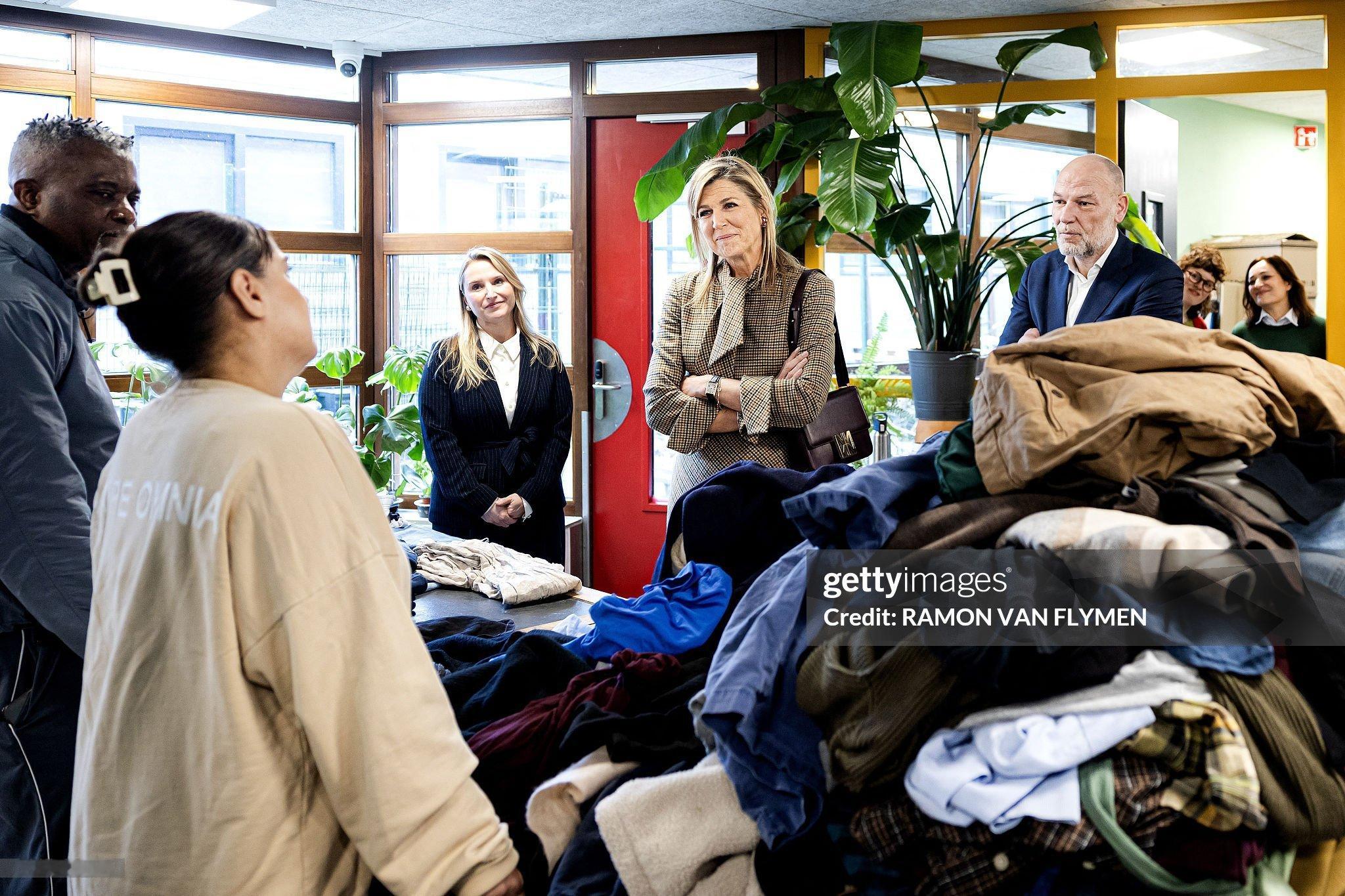 新闻 2026.2.17 荷兰王后玛克西玛在阿姆斯特丹访问为欧盟无家可归公民提供支持的收容所,旧格纹连衣裙来自Natan。