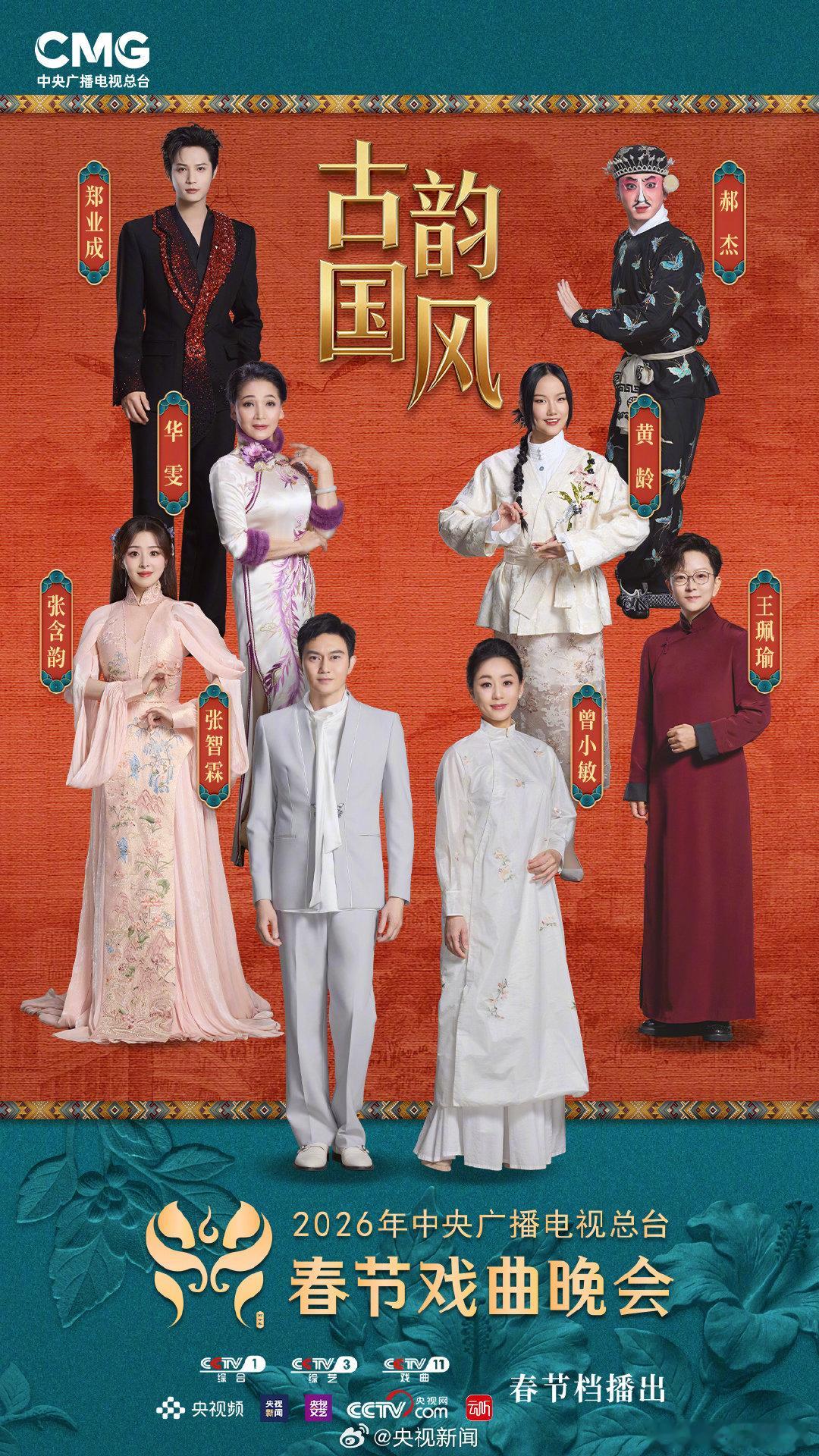 春节戏曲晚会节目单央视春节戏曲晚会阵容公布央视春节戏曲晚会 最强阵容集结!陈丽君、郑云龙携手献艺,《墨客逍遥游》展诗乐戏韵,今晚八点CCTV-1、CCTV-11,与山水共戏贺新春!