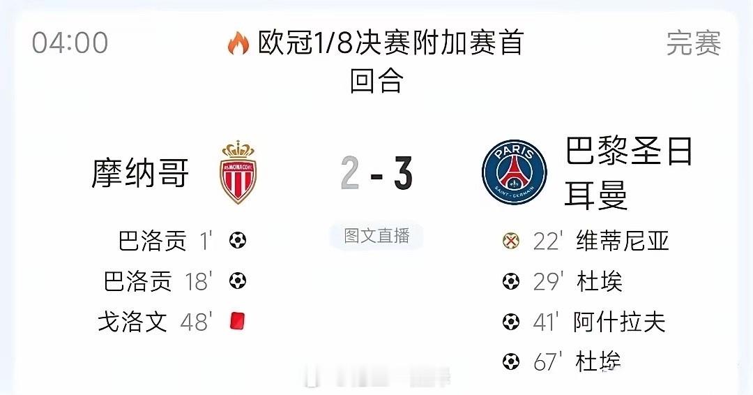 皇马客场小胜,姆巴佩助攻维尼休斯破门,卫冕冠军大逆转,老妇人濒临出局!今天凌晨进行的欧冠附加赛,本菲卡主场对皇马。比赛唯一进球发生在下半场第50分钟,姆巴佩妙传维尼休斯,后者顺势起脚,为皇马取得客场领先。本场比赛的看点不在比分,而在于皇马整队找回基本状态,踢得很沉稳,失误也在正常范围,可谓全员用命,回到主场后,晋级形势一片光明。摩纳哥对大巴黎,开场仅18分钟,摩纳哥就连入两球,让人一度为卫冕冠军的前景担忧。好在大巴黎很快就还以颜色,替补登贝莱出场的小将杜埃独造三球,最终帮助大巴黎3比2成功实现逆转。另一场比赛,德甲豪门多特蒙德主场2比0力克意甲的亚特兰大。提前进行的一场比赛,老妇人尤文图斯客场2比5惨败土超豪门加拉塔萨雷,晋级形势岌岌可危。足球 欧冠联赛本菲卡0比1皇马加拉塔萨雷5比2尤文图斯摩纳哥2比3巴黎圣日耳曼