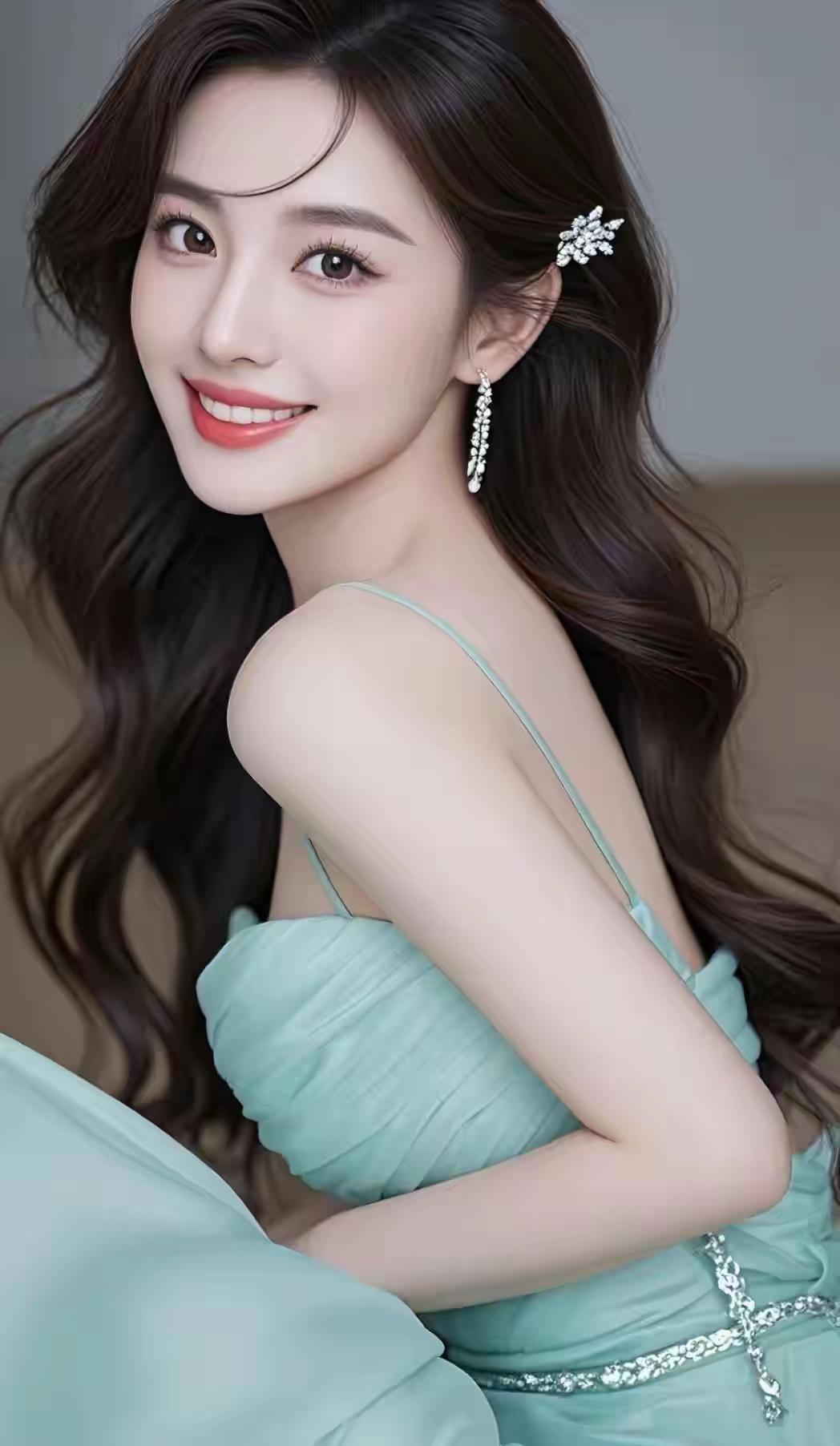 温柔甜美的绿裙仙女,微笑如花,优雅动人!