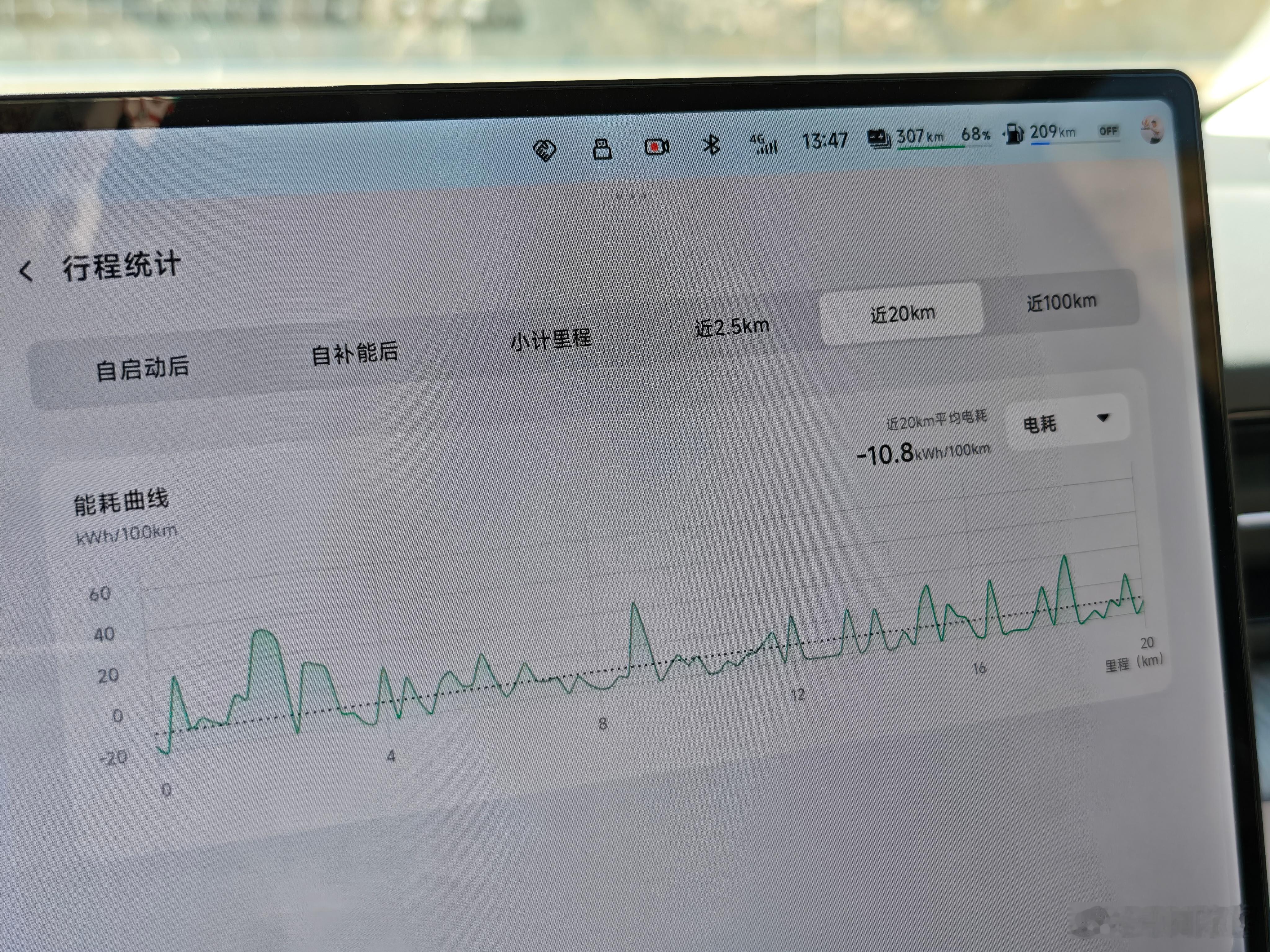 给大家一个忠告!在高原自驾不要轻易充满电!因为你不知道什么时候就会遇到一个几十公里的长下坡,充满电就浪费了这大自然的馈赠。电量越跑越多,真爽