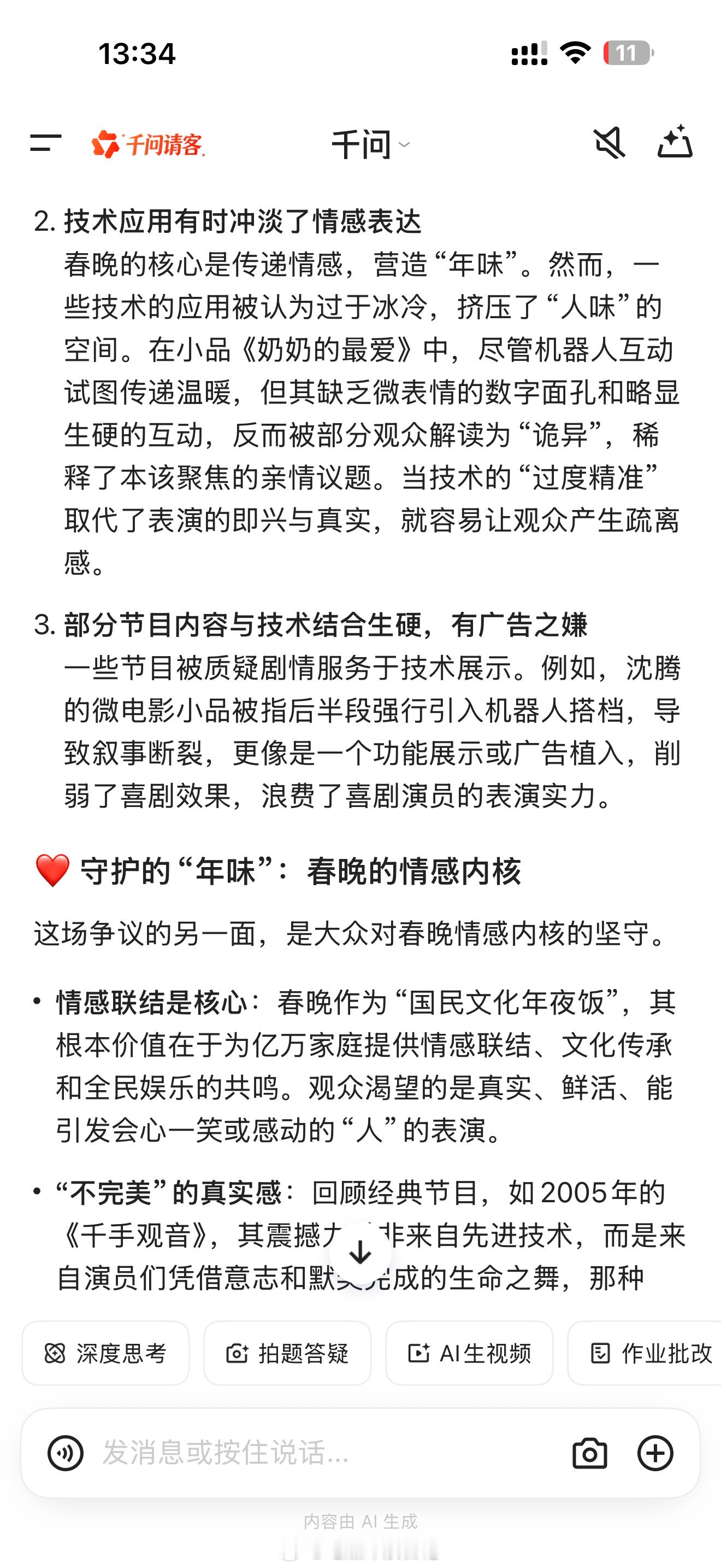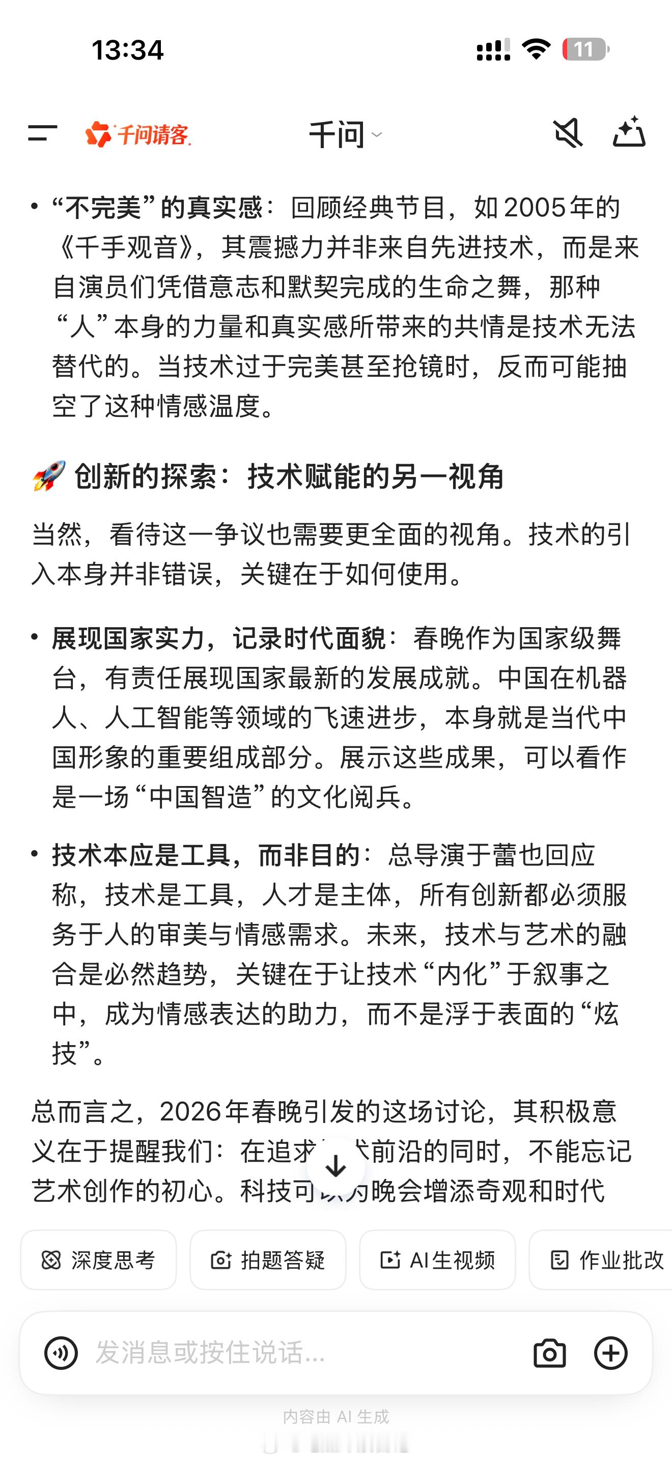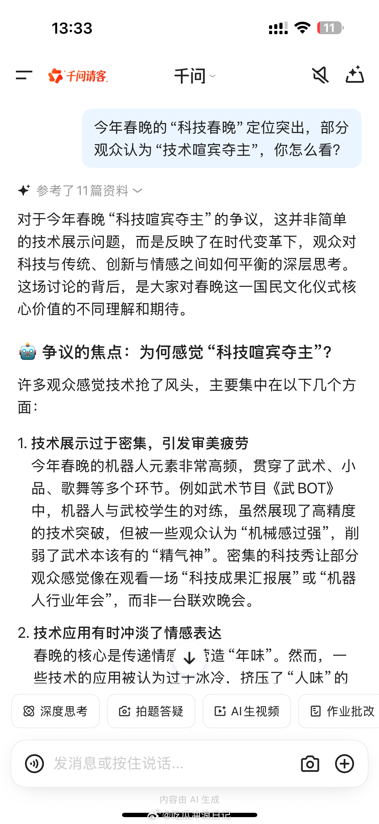 我AI聊春晚 都说今年“科技春晚”定为突出,我问了千问,觉得说的还挺在理!
