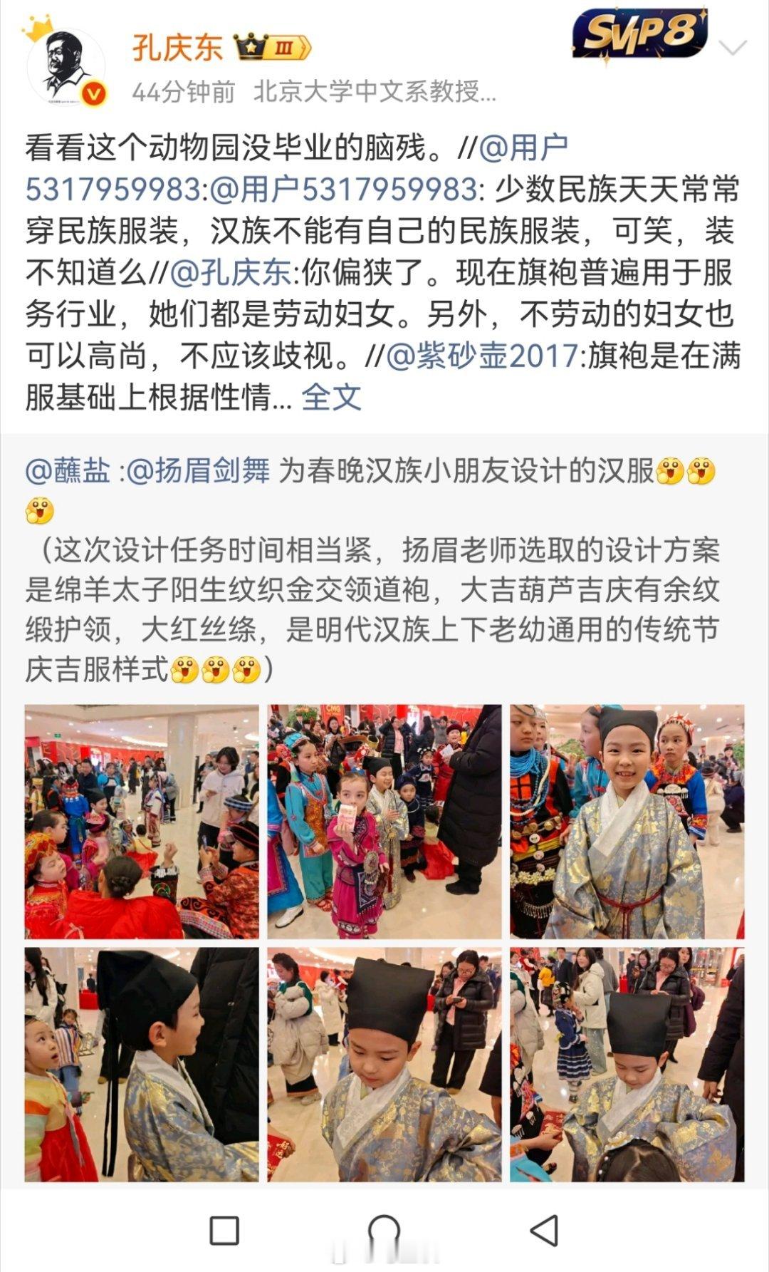 孔庆东不但污言秽语大肆辱骂推广汉服的人,还发明了一个可笑的词汇——“汉独”,这样