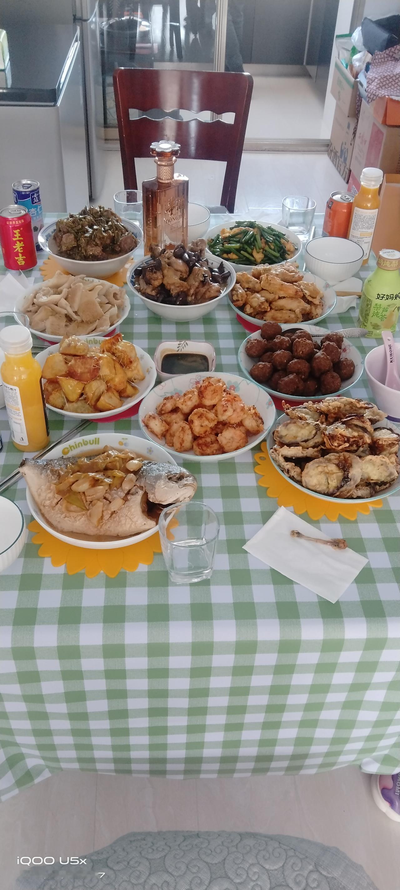 今天初二,女儿一家三口回娘家了。 外孙女进门就给姥姥姥爷拜年,女儿女婿分别拜年,清净的家里一下子就热闹起来了。 昨天菜已经做成了成品,半成品,有的空气炸锅热一下就能上桌,所以一会儿的功夫菜就上全了,开饭了,家人们互道祝福,愉快的推杯换盏,不亦乐乎。 祝我的家人在新的一年里,健康快乐,事事顺遂!
