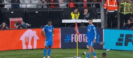 到最后完全就控制不住了,完全成为道具赛了,里斯本光明球场真的一点都不光明,打火机,水杯,雨伞,各种可以带进入的物品都被投掷进了球场内,主裁判勒泰西耶几乎控制不住,还随手把扔下来的打火机放到场外。