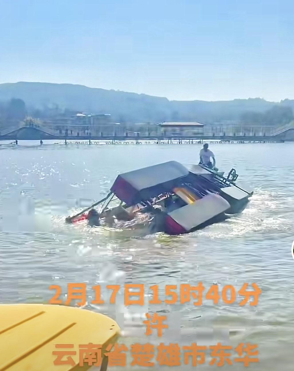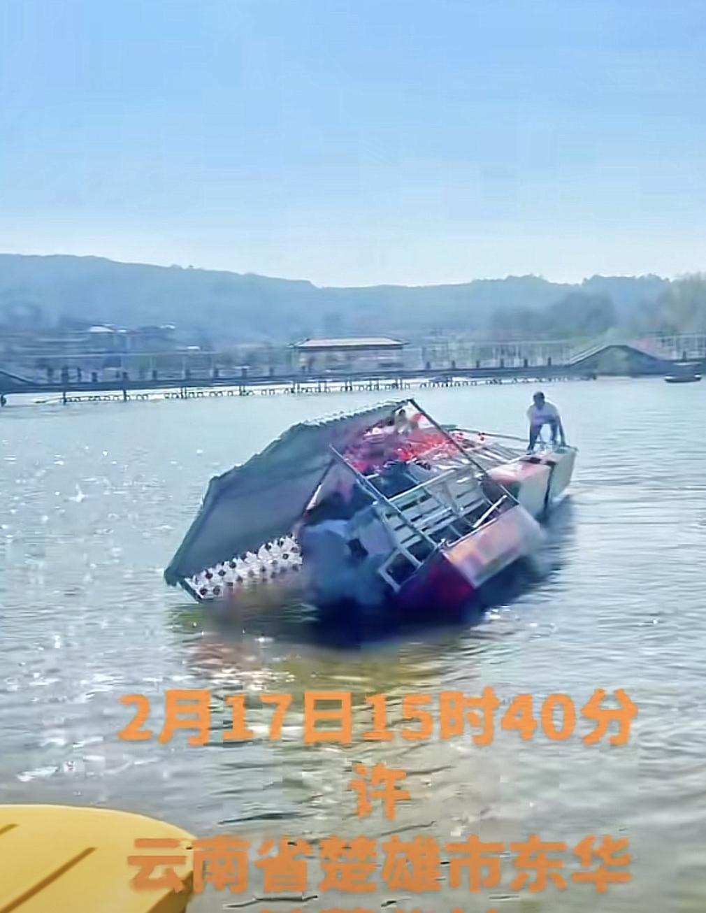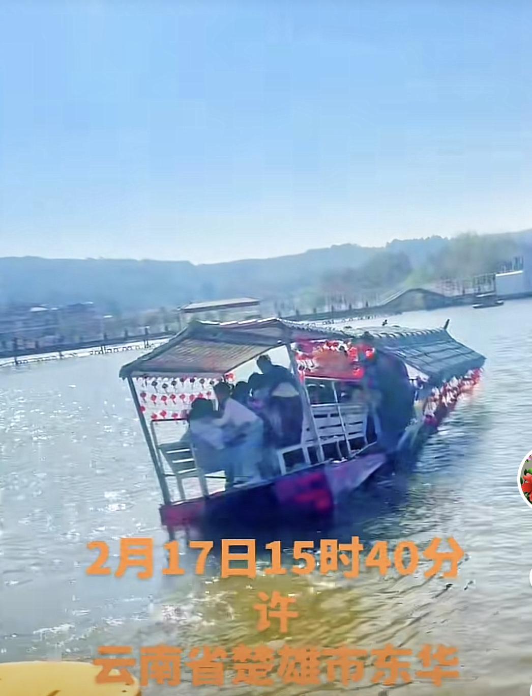 云南楚雄游船翻覆事件: 游船有两段,开始时,仅前面一部分轻微向右倾斜,然后迅速