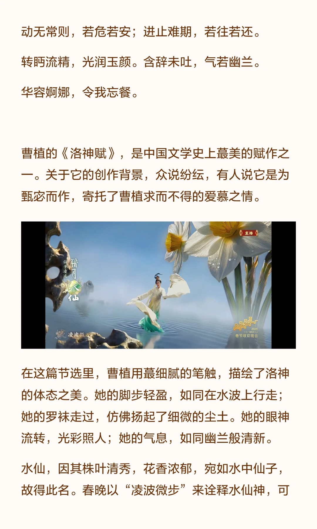 2026年春晚《贺花神》以十二种花象征十二种人生,从梅花的隐逸到荷花的正直,再到水仙的从容,展现了生命的不同境遇与追求。 每一朵花都承载着古人对生活的思考与感悟,提醒我们在各自的人生季节中,活出属于自己的精彩。
