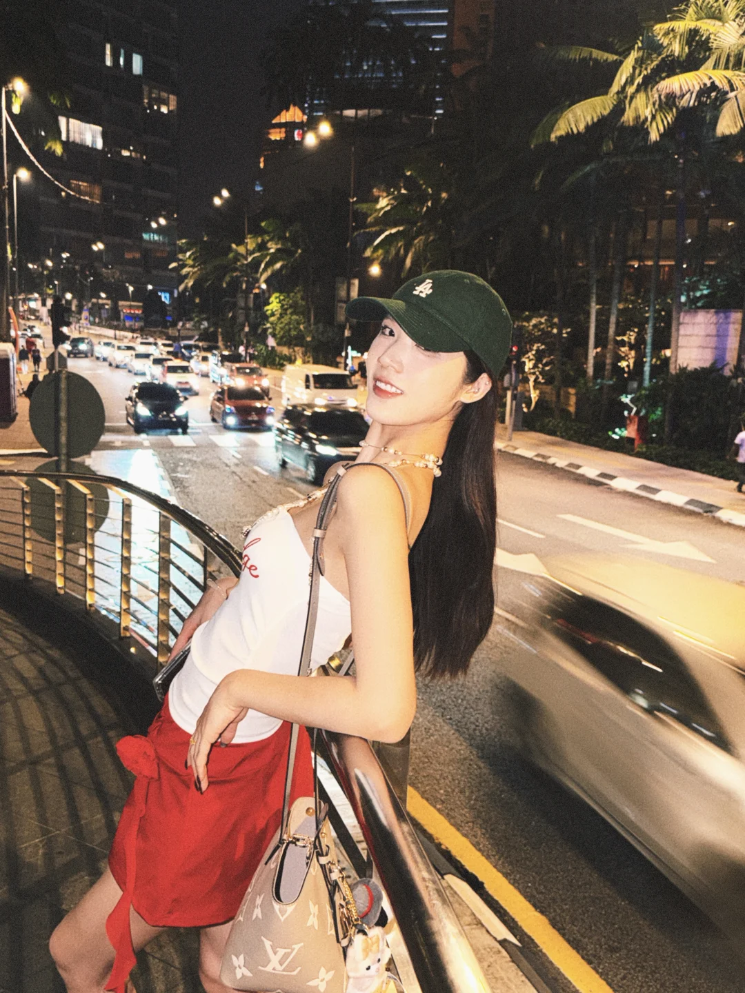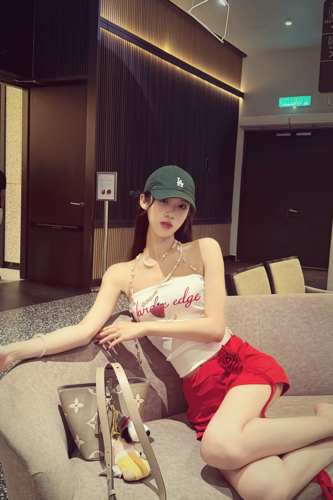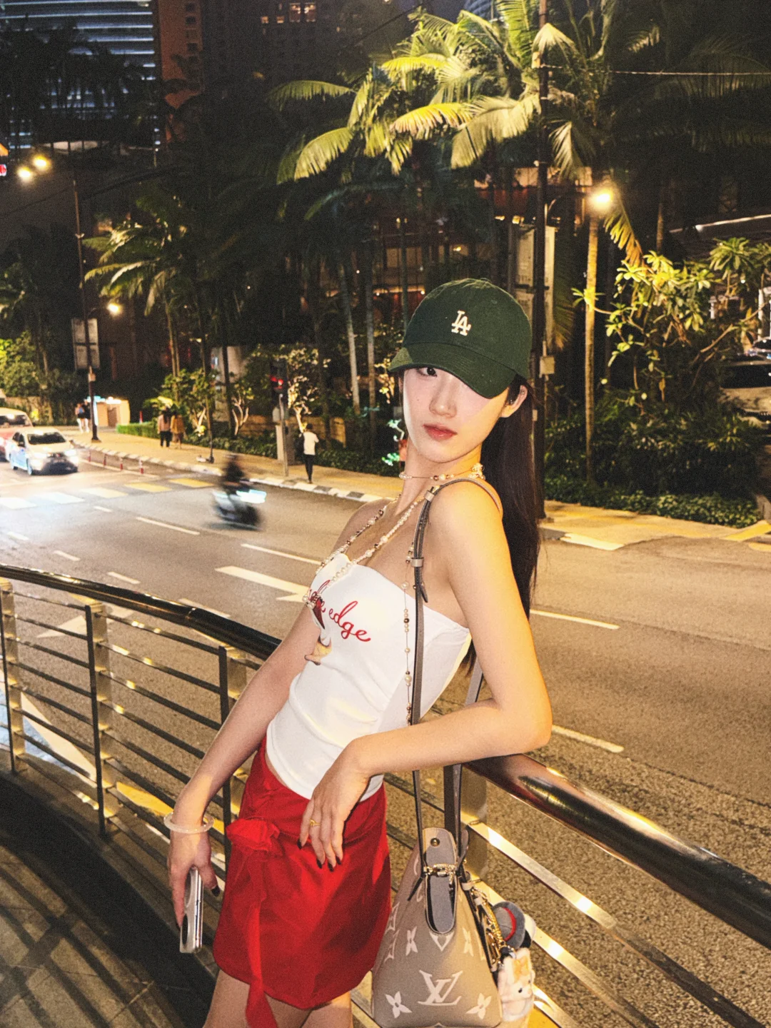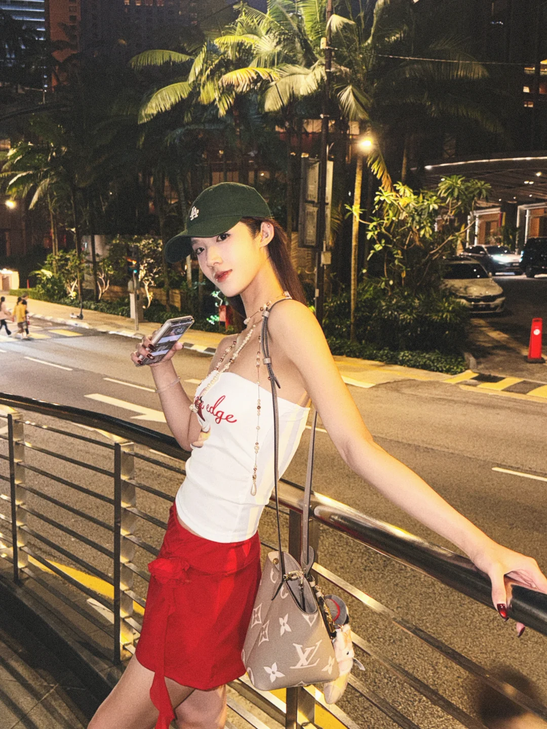 当亮面牛仔夹克的冷艳光泽,遇上闪钻抹胸的璀璨锋芒,再用极简白短裤与银色高跟聚焦全