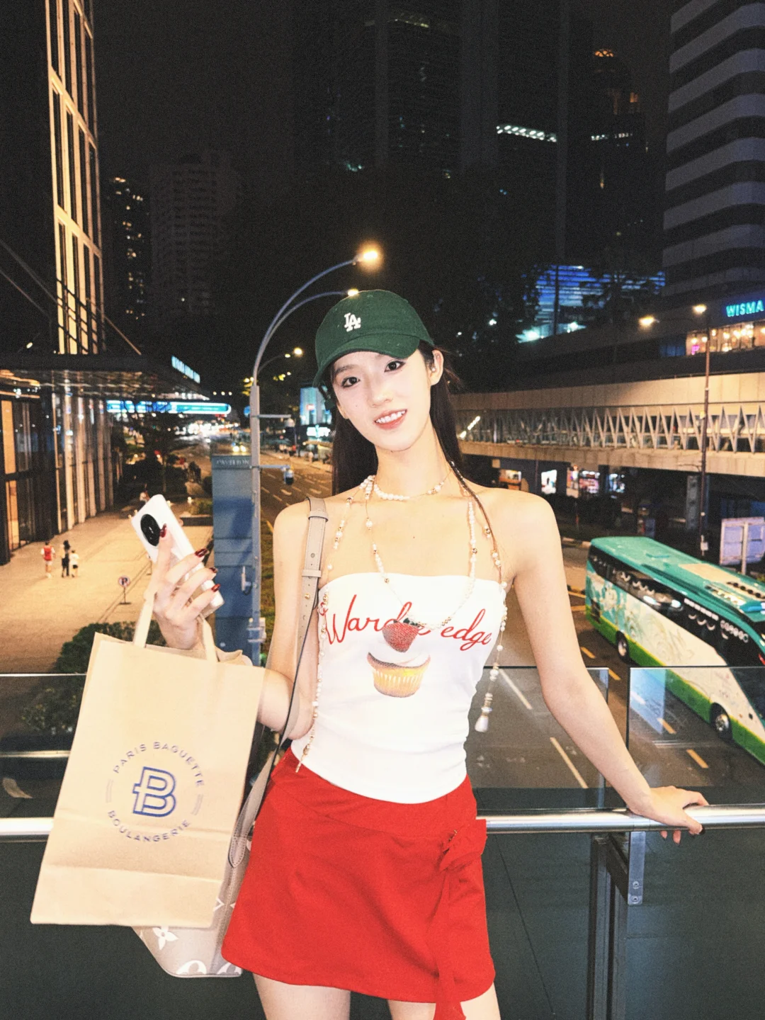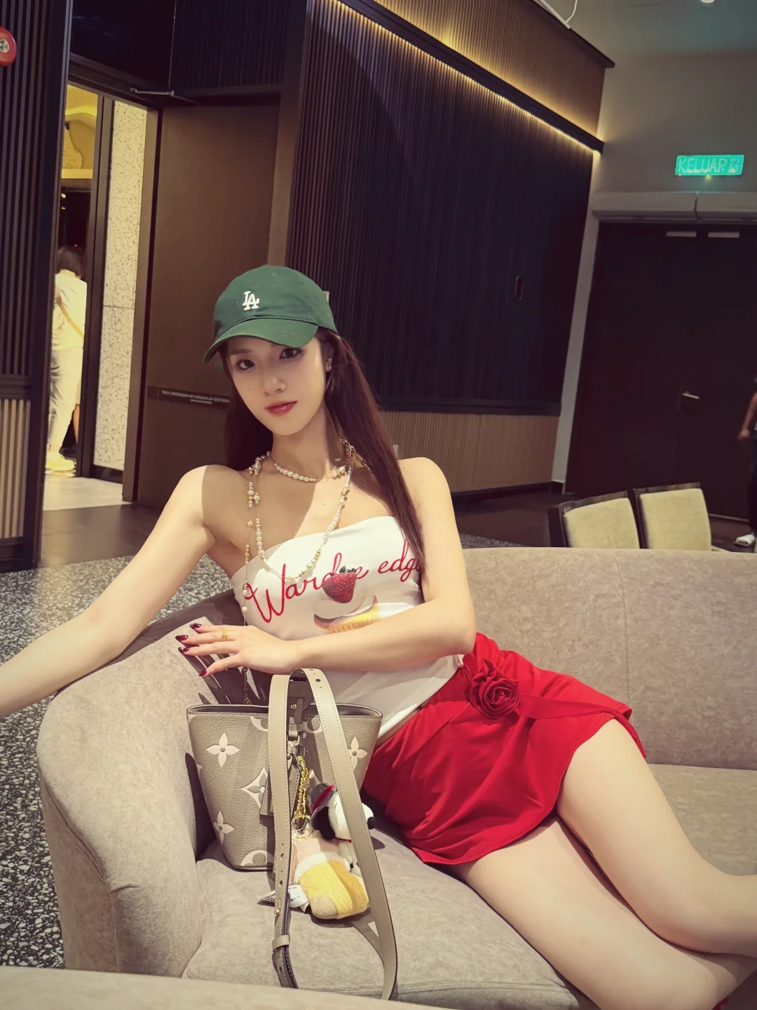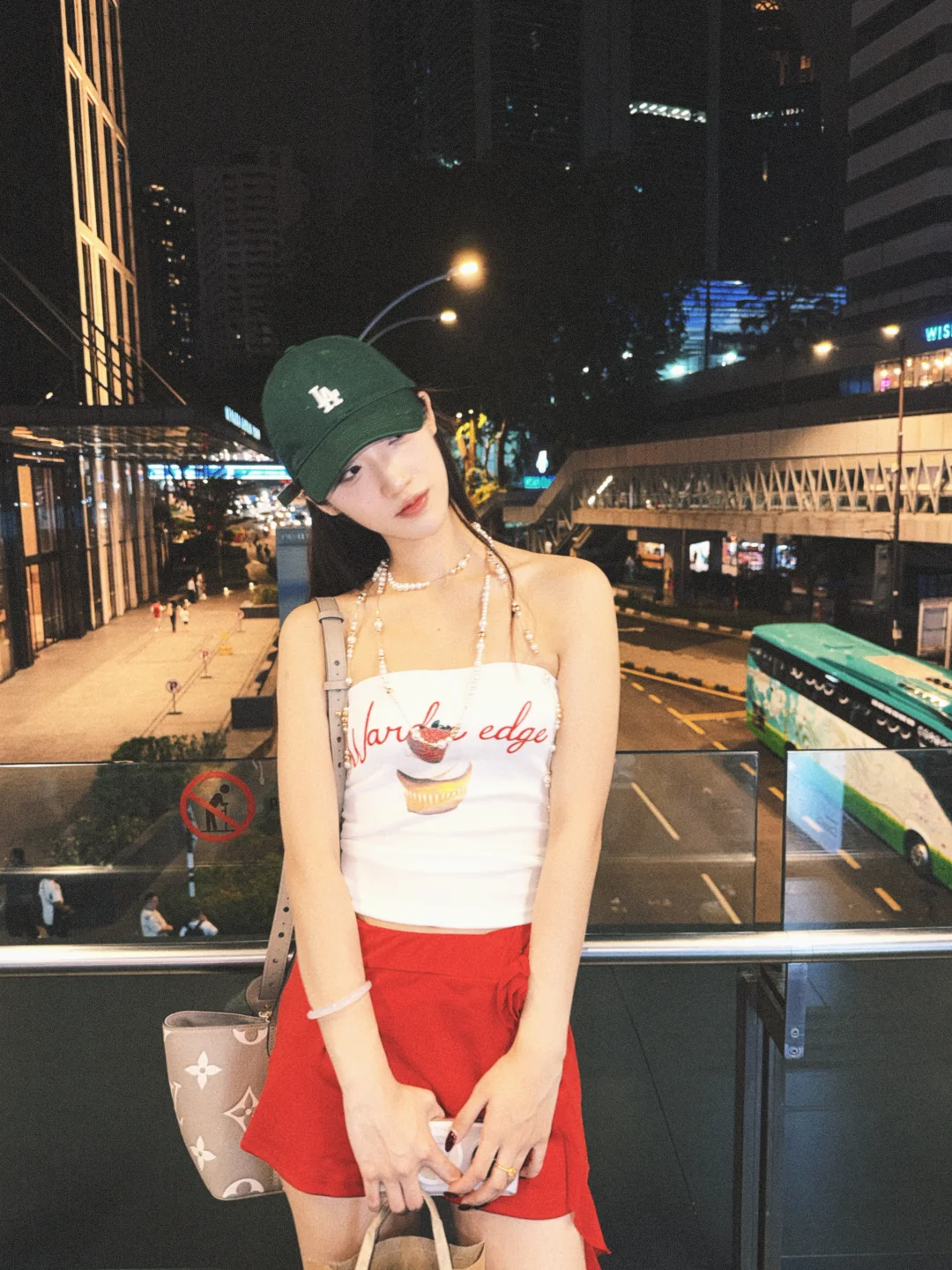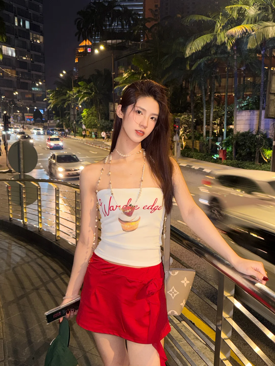 当亮面牛仔夹克的冷艳光泽,遇上闪钻抹胸的璀璨锋芒,再用极简白短裤与银色高跟聚焦全