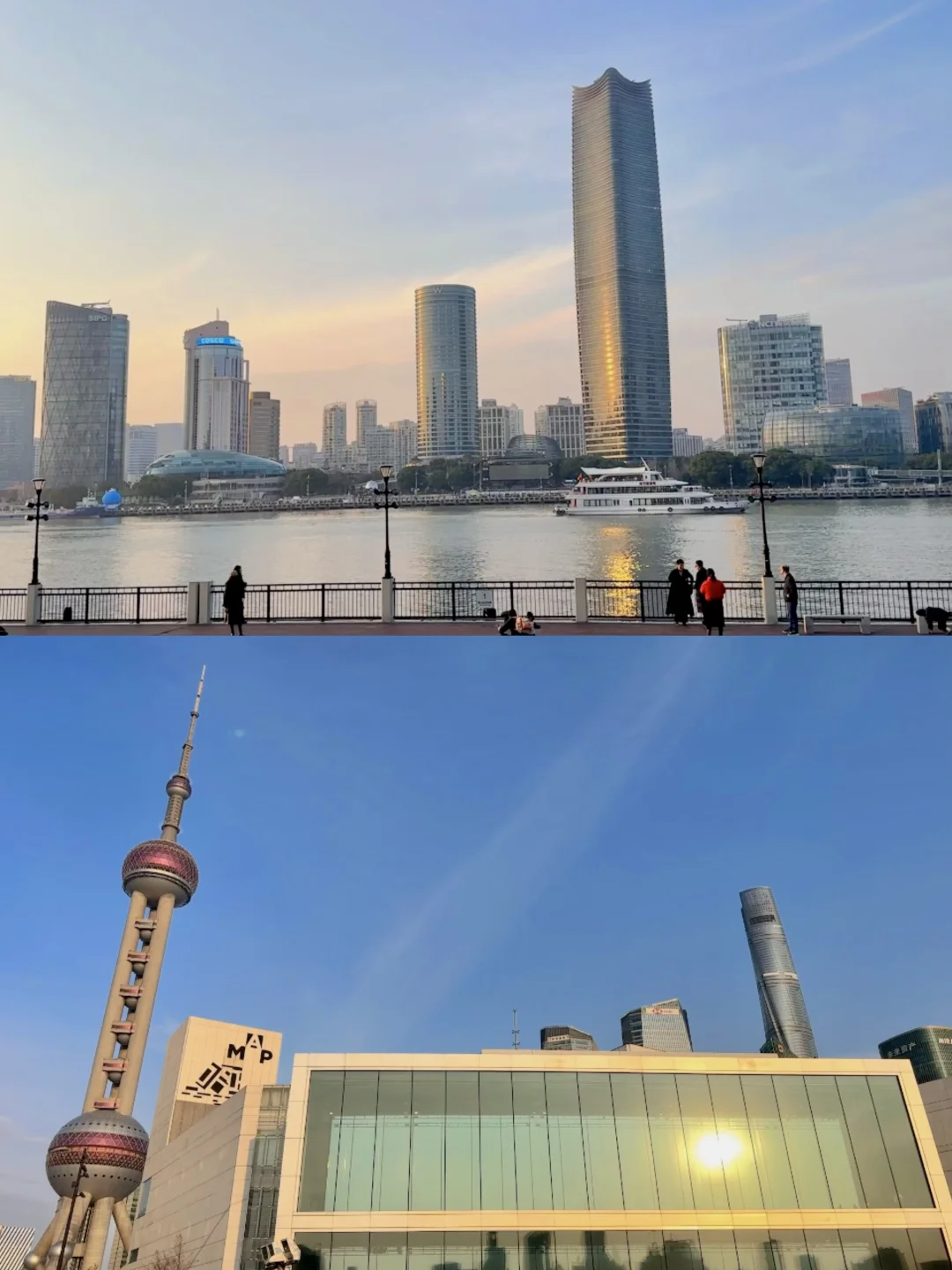 大年初一来到浦东的黄浦江畔,遥看对岸外滩人群密密麻麻,相对而言这边人会少一些。 [拔草R] 私藏路线分享: 1⃣️ 世纪大道&东泰路交叉口:经典魔都三件套同框📸【图4】 2⃣️ 人行天桥:绝佳视角拍三件套【图8】+东方明珠全景构图【图7】 3⃣️ 浦东美术馆前滨江步道:get《轧戏》同款落日长廊🌉【图1-3,5,6⬇️】 4⃣️ 东岸绿道偶遇东方明珠游艇码头⚓️【图6⬆️】 🚴♀️强推沿江骑行!专用骑行道纵享丝滑江风~