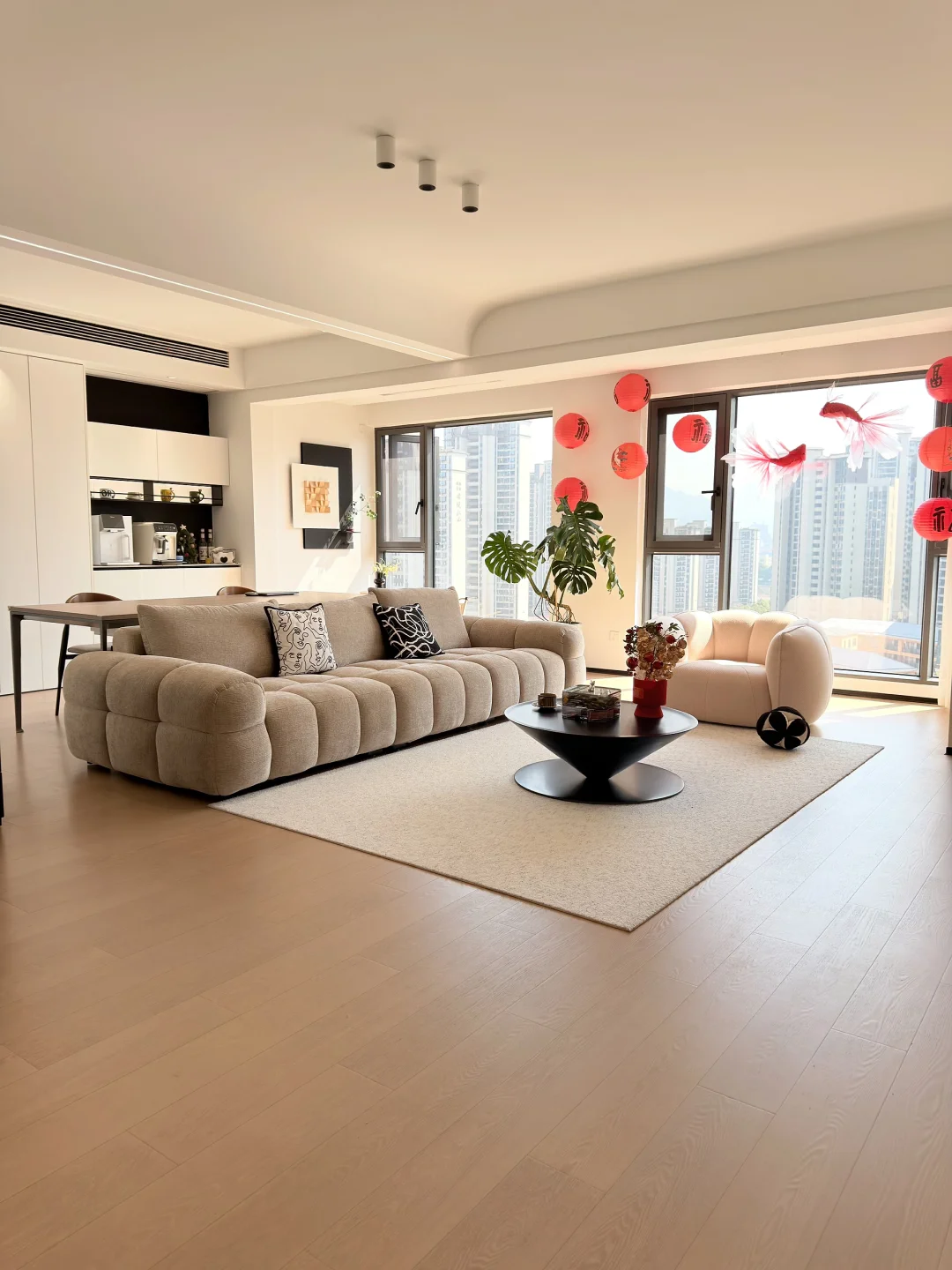 我家🏠建筑面积140平,套内118平 硬装花费15w,软装花费10w+ 拼尽全力装成自己想要的样子~ 客厅是开间7米的大横厅 打通一间房合并成客厅 全屋木地板通铺,全屋大白墙 显大又通透! 👇附上我家的装修清单: 封阳台:11735 水电材料+工费:9500 防水:1000 砸墙铲顶:550 (回收旧门抵掉1300) 水泥沙杂费:5000 瓷砖及材料+泥工工费:16500 木工工费+材料:8500 石材:2200 水槽:459 油漆+工费:9500 所有的门:10500 地板:23726 踢脚线:947(自己安装所以没有工费) 美缝:1500 柜子:43000 集成吊顶:2500 开荒:800 淋浴房:3200 空调出风口:350 燃气相关费用:750 全屋灯具:6300 开关插座:950 洗衣池:2400 👇客厅软装 沙发:4424 单人沙发:980 餐桌椅:3800 地毯:1500 茶几:1900 大长桌:1350 窗帘:2300 👇主卧软装 床:2780 床垫:1910 窗帘(主卧+儿童房+客卧):1700 飘窗垫:300 👇儿童房软装 床+床垫:3035 窗帘在主卧清单包含了 👇客卧软装 床+床垫:4700 窗帘在主卧清单包含了 👇卫生间 马桶:3500 花洒:2000 浴室柜:1900 👇电器清单 洗碗机:4700 热水器:1080 风管机:11500 空调挂机:8400 烟机燃气灶:3200 冰箱:5700 投影+幕布:6500 洗衣机+烘干机:4349