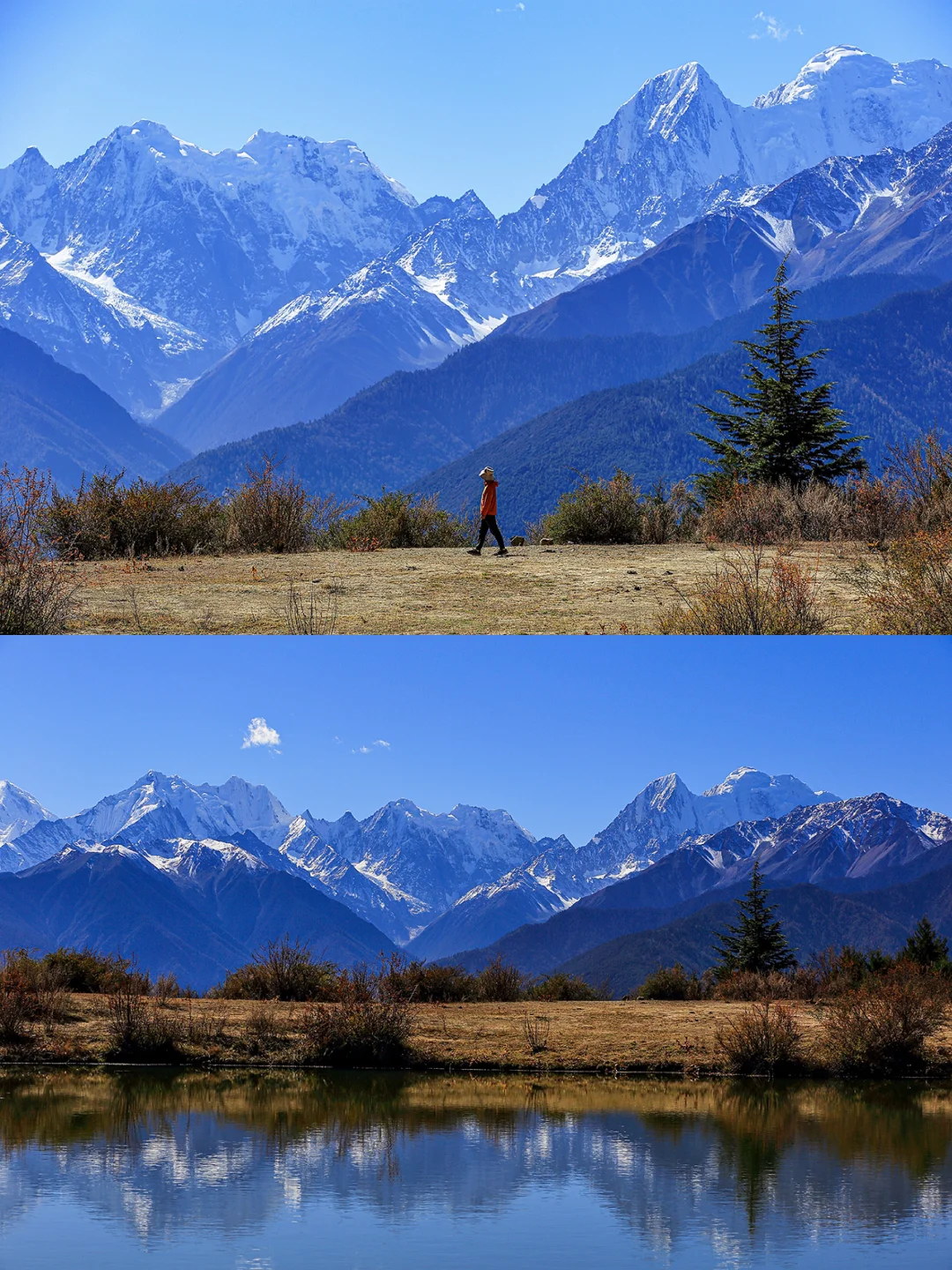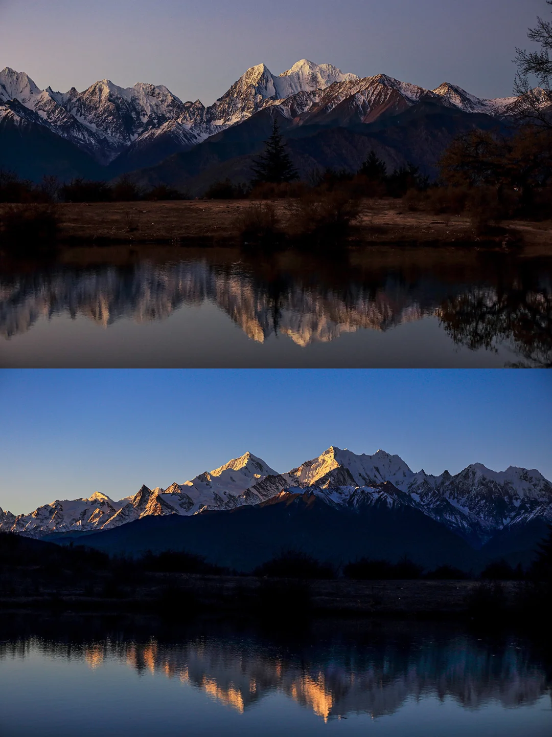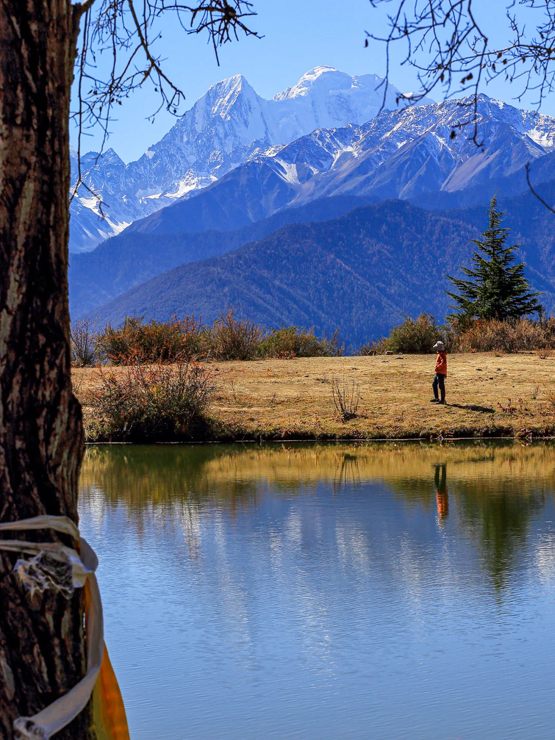 1⃣️虽然有点远,这里看倒影的机位绝对值,目前还没找到哪个地方能看梅里雪山倒影的机位。