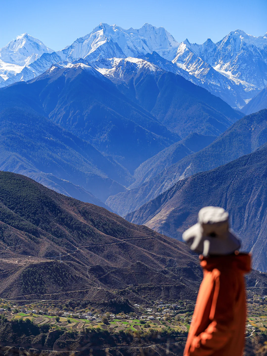 ✅去云南看梅里雪山的游客,99%都会选择在飞来寺、雾浓顶、一棵树这几个地方看日照金山,主要原因还是交通方便,但是游客非常多,很难拍到人物与雪山合影的照片。
