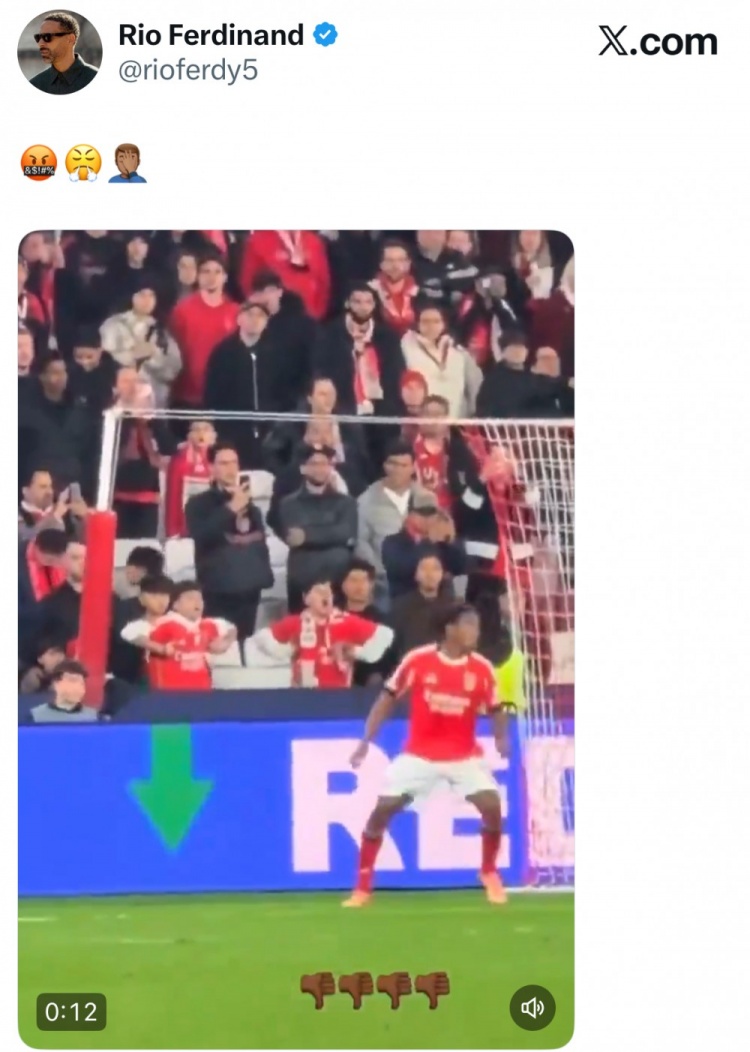 费迪南德转发本菲卡小球迷种族歧视动作:♂
