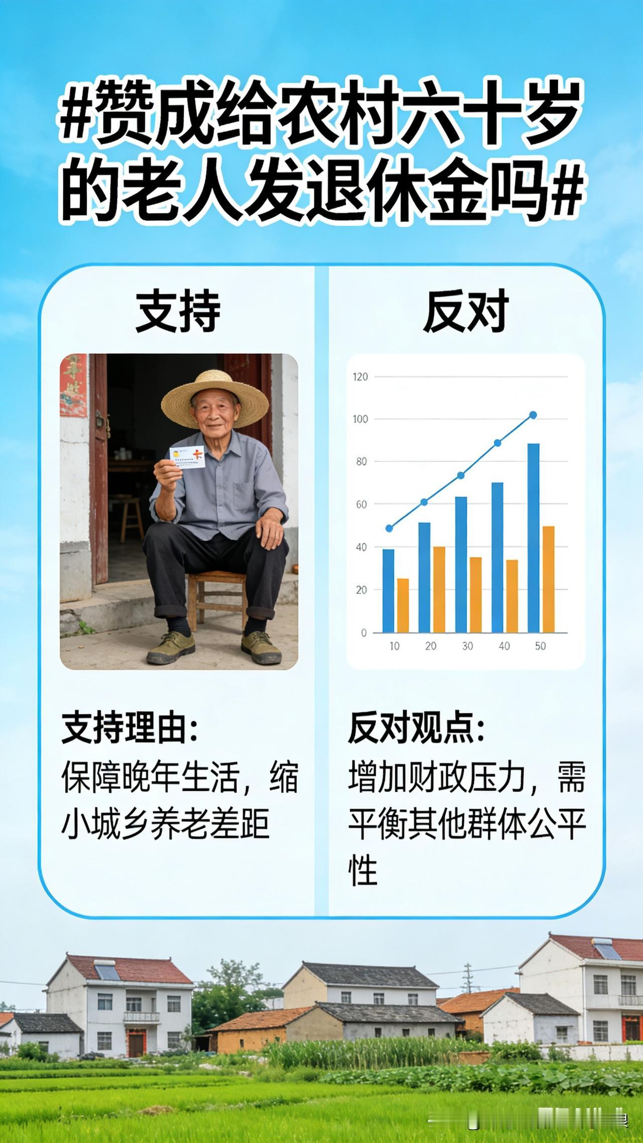 我举双手赞成!✅ 农村老人苦了一辈子,种粮交税、交公粮、出义务工,养活全家、支撑国家发展。老了干不动了,就该按月领退休金,安安稳稳过日子。 城里老人退休有工资,农村老人也该有保障。现在每月一百多块,实在太少,买药、吃盐都紧巴巴。 多给农村老人发点养老钱,不是负担,是良心,是公平! 谁不是父母养的?谁都会老?同意的点赞转发,为农村老人说句公道话!农村养老 民生关注 农民辛苦了 农村基础养老金 农村居民养老金 农民养老金 老人养老金 农民养老待遇 农村老人待遇 农村养老金低 农村老人补贴 农村养老 民生关注 农民辛苦了 图片由AI生成