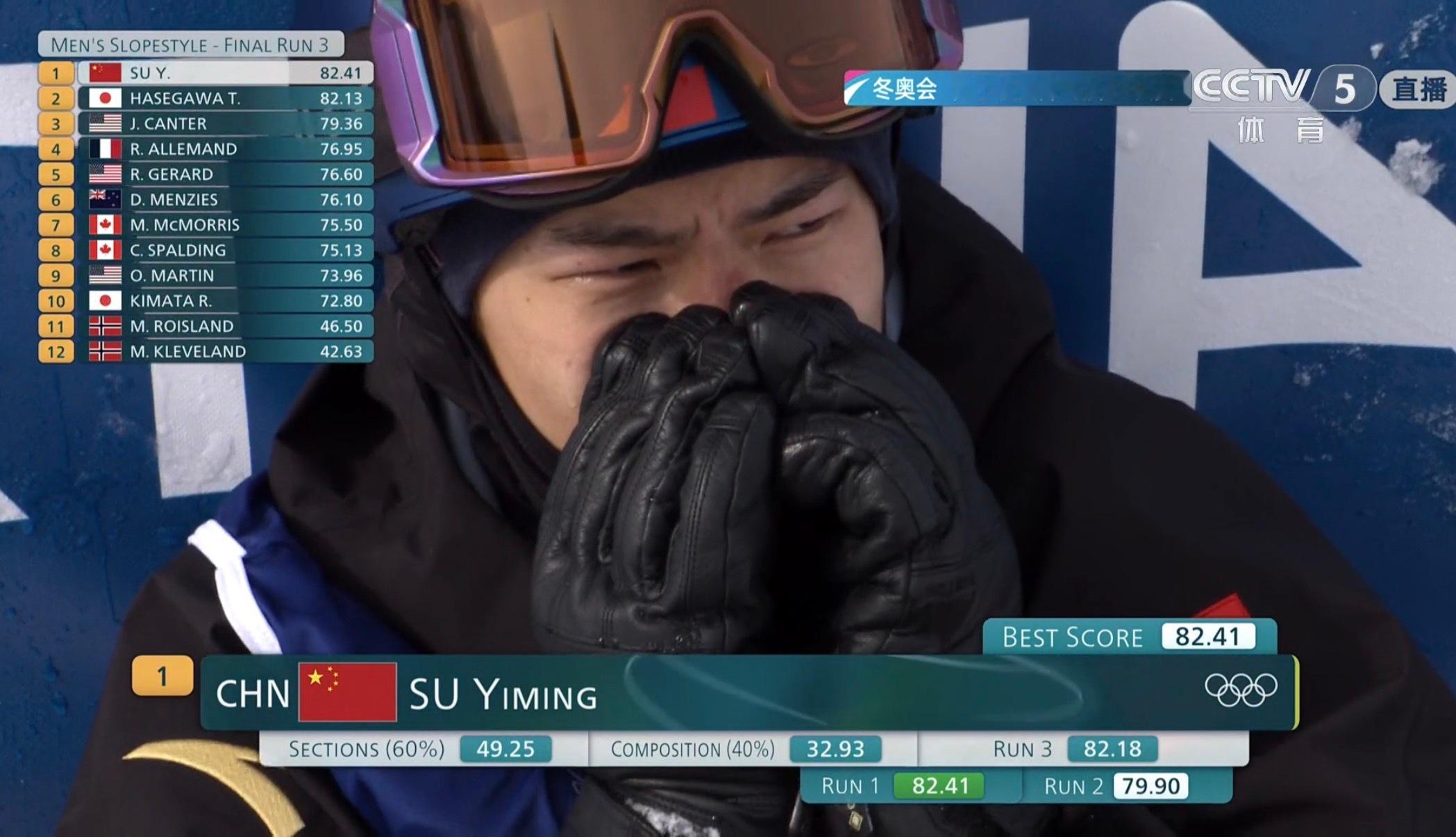 喜极而泣! 苏翊鸣第三滑完美发挥拿到82.18分 完成动作忍不住痛哭