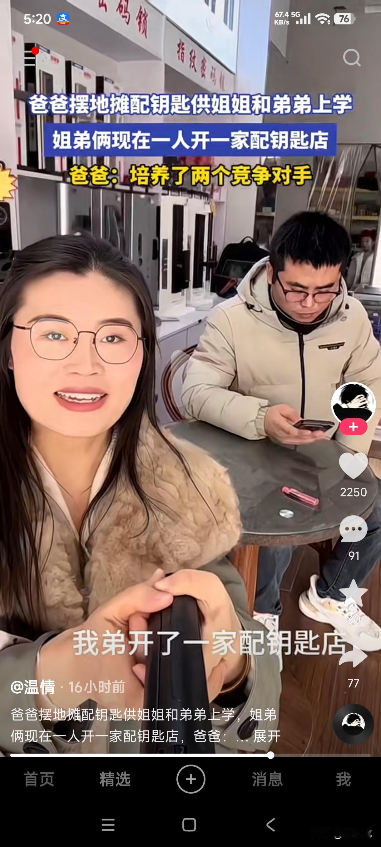 男子摆地摊配钥匙供两个子女上学,如今姐弟俩一人开一家配钥匙的店,爸爸依旧还是在摆地摊,爸爸这是培养了两个竞争对手吗? 俗话说龙生龙凤生凤,老鼠生的儿子会打洞,这当爹的无论如何都想不明白,自己一辈子摆摊配钥匙供两个子女上学,到头来他们姐弟两却干起了自己的老本行,这么多年供他两上学的钱是不是白花了,早知道他们姐弟两会遗传自己养家糊口的本领,还不如当初别上学直接入手学这一行多好,既省好多钱,也少走好多弯路,这岂不是两全其美的操作。 如今他俩每人开了一家配钥匙的店,这不是和自己抢饭吃嘛,这算是父子三人共同创业呢?还是父子三人独霸一行呢?