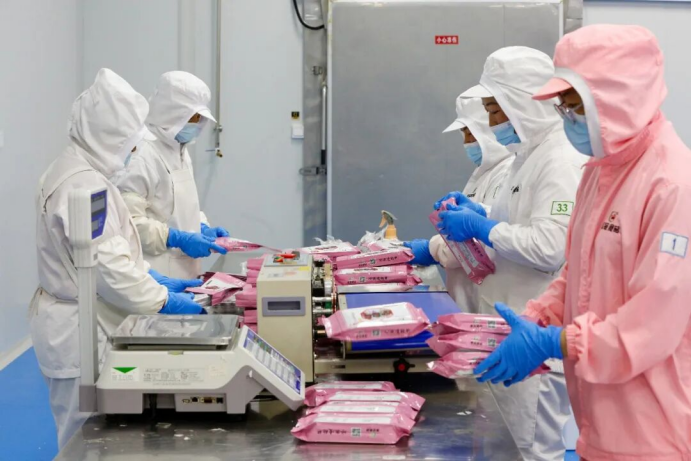 “眼下生产线满负荷运转,全员在岗全力赶订单,目前订单已排至3月底,较去年同期大幅提升。”春冠食品有限公司总经理马立君表示。作为全年产值超过4亿元、全球供应量约五分之一的行业龙头,春冠食品的订单早在节前就已排满。正月初一坚守岗位,对于许多员工而言,既是保障市场供应的责任,也是一份“甜蜜的负担”。