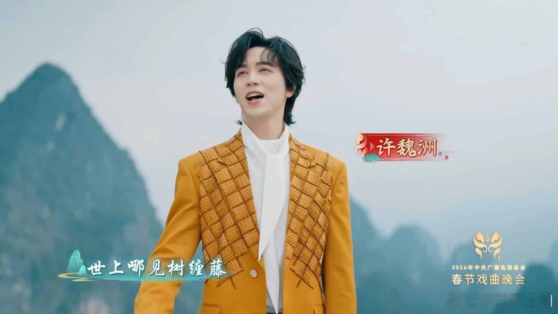 许魏洲王鸥在阳朔唱山歌藤缠树是山水长出来的情歌央视春节戏曲晚会央视戏曲晚会绝美舞台,许魏洲王鸥在阳朔实景开唱,《藤缠树》越听越有韵味。